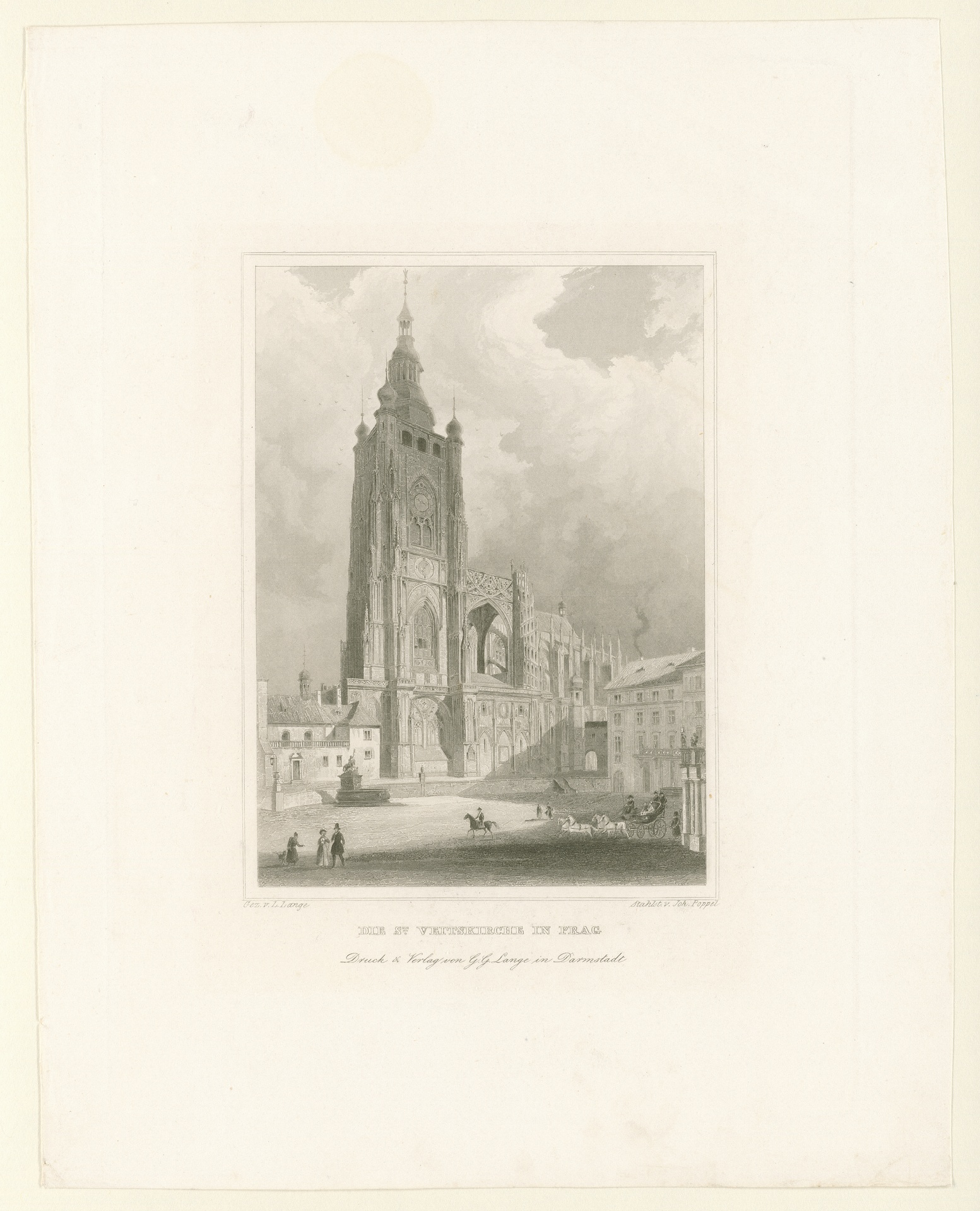 Der St. Veitsdom in Prag, 1842 - Stich von Johann Gabriel Friedrich Poppel nach einer Zeichnung von Ludwig Lange, erschienen bei Gustav Georg Lange, Darmstadt, 1842