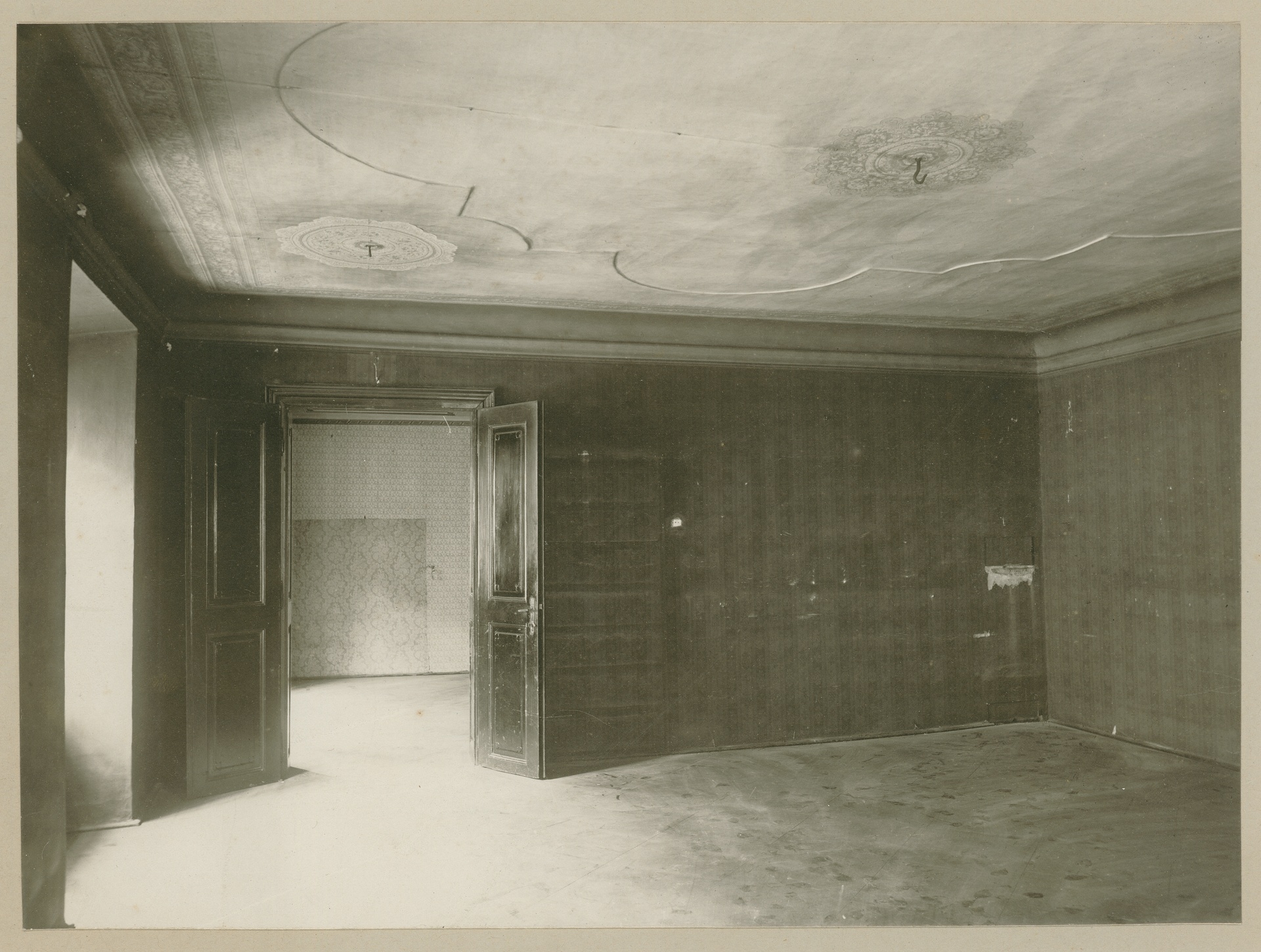 Wien, Alsergrund, Schwarzspanierstraße 15, Wohnung von Ludwig van Beethoven (Schwarzspanierhaus), Blick in das Schlaf- und Klavierzimmer und das angrenzende Komponierzimmer - Fotografie, vermutlich von Franz Weber