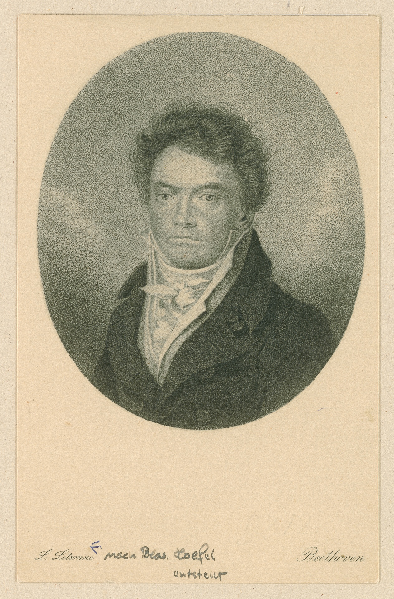 Ludwig van Beethoven - Stich von Carl Traugott Riedel von 1815 nach dem Stich von Blasius Höfel aus dem Jahr 1814 nach einer Zeichnung von Louis Letronne, Reproduktion, erschienen bei Wiechmann, München, um 1920