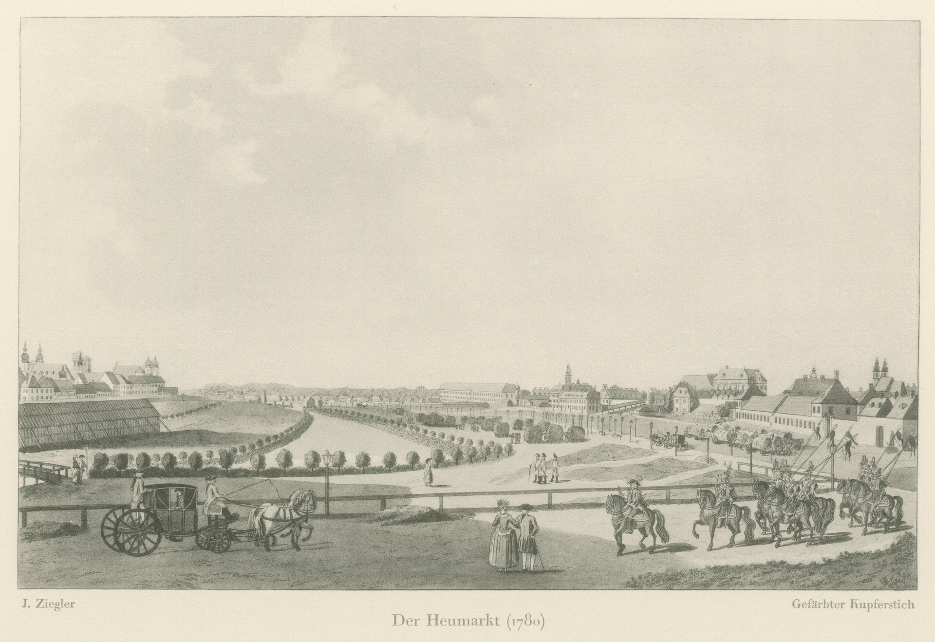 Der Heumarkt in Wien, 1780 - Reproduktion eines Stichs von Johann Ziegler nach einer eigenen Zeichnung