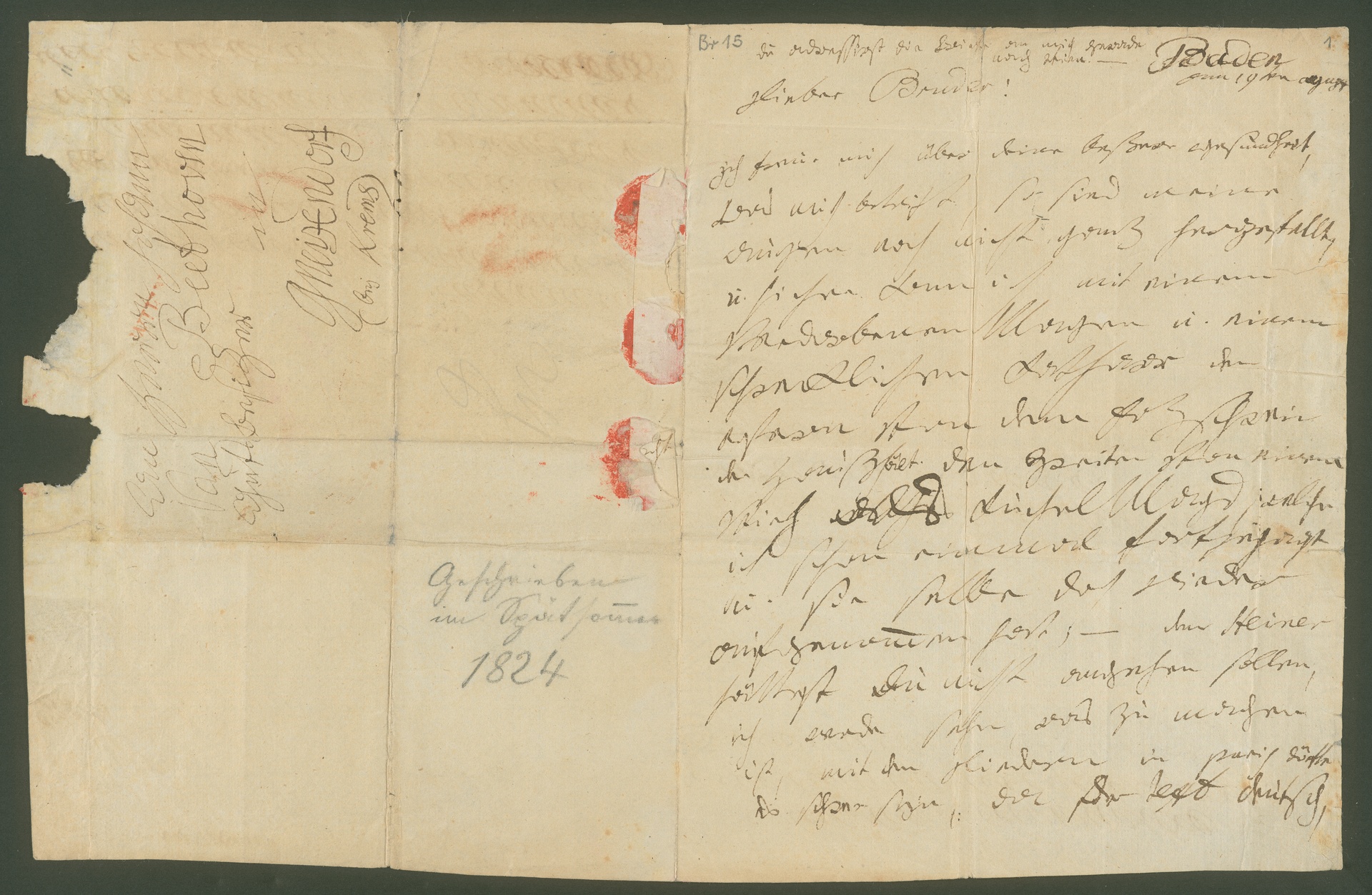 Ludwig van Beethoven, Brief an Johann van Beethoven in Gneixendorf, Baden, 19. August 1823, Autograph