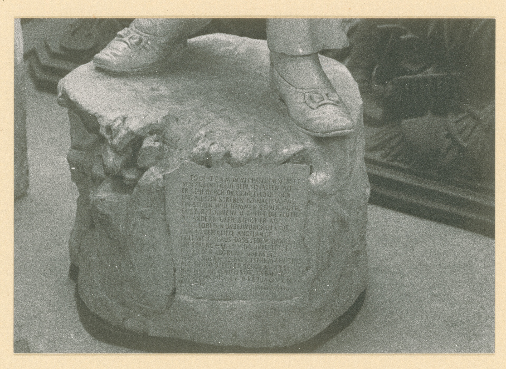 Schon wenige Jahre nach der Aufstellung der Plastik wurde Weigls Konzept als zu wenig monumental empfunden. So schuf man 1910 eine architektonische Einfassung mit einer Säulenreihe, um die Statue optisch von der Welt des Betrachters abzurücken und in eine eigene, erhabenere Sphäre zu setzen. (S.B.)