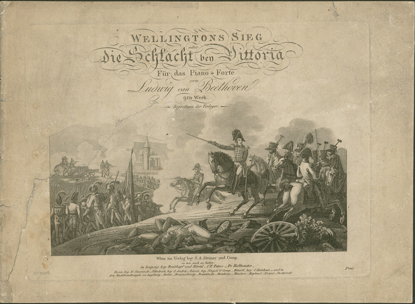 Bildlegende: Titelblatt des Klavierauszuges zu "Wellingtons Sieg oder die Schlacht bei Vittoria für Orchester" op. 91 von Ludwig van Beethoven; Beethoven-Haus Bonn, Sammlung H.C. Bodmer