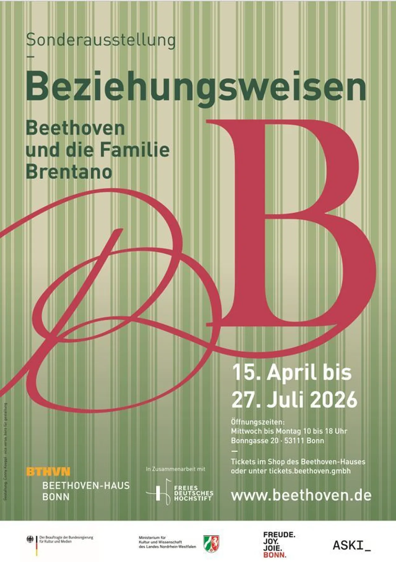 Beethoven und die weit verzweigte Familie Brentano sind über unterschiedliche Berührungspunkte und vielfältige Geschichten miteinander verbunden. Ihre Beziehungen eröffnen jeweils neue Perspektiven auf den Komponisten. Sie zeigen Beethoven als Künstlerpersönlichkeit zwischen Klassik und Romantik, die viele andere inspirierte, aber auch als Menschen, der Freundschaften pflegte und das Familienleben schätzte.