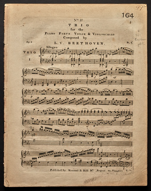 Stolz und selbstbewußt hört sich diese Anzeige an, mit der Beethoven am 9. Mai 1795 auf seine Trios Op. 1 hinwies und zur Vorbestellung aufforderte. Das erste seiner veröffentlichten Werke, welches der Komponist für wert hielt, eine Opuszahl zu tragen. Entstanden waren die Trios 1794 und 1795, möglicherweise mit älteren Vorläufern für das erste Trio aus Beethovens Wiener Anfängen von 1792/93.