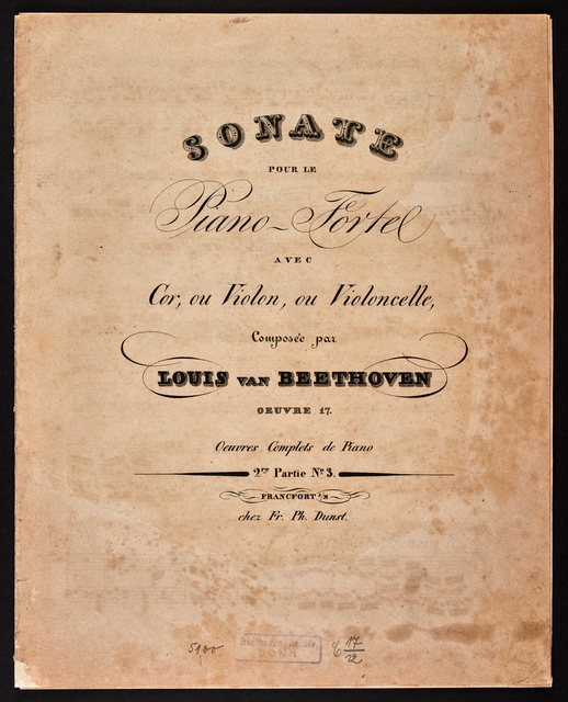 Beethoven komponierte seine einzige Sonate für Horn Anfang 1800. Johann Wenzel (Jan Václav) Stich alias Giovanni Punto, der berühmteste Hornvirtuose seiner Zeit, hielt sich einige Zeit in Wien auf. Wahrscheinlich im Haus des Grafen Deym machte er die Bekanntschaft des Komponisten. Beethoven komponierte die Hornsonate eigens für Puntos Akademie im Kärntnertor-Theater am 18. April 1800. Punto war ein Virtuose, der durch seine ausgefeilte Technik auch zur Erweiterung der klanglichen Möglichkeiten des Instruments beitrug. Um 1800 war das Horn noch ein Naturtoninstrument ohne Ventile. Chromatische Töne, die von der Naturtonreihe abwichen, konnte man nur durch spezielle Techniken wie Stopfen (die Veränderung der Luftsäule im Instrument durch Einführen der rechten Hand in die Stürze) oder bestimmte Anblastechniken erreichen. Erkauft wurden diese "Sondertöne" häufig durch verminderte Klangqualität. Punto war einer der Wenigen, deren klangliches Ebenmaß und meisterhafte Beherrschung aller Töne gerühmt wurden. Beethoven schöpfte Puntos Kapazitäten voll aus und gab ihm jede mögliche Gelegenheit, seine Fertigkeiten unter Beweis zu stellen: er komponierte ihm die Sonate quasi auf den Leib und führte sie mehrfach auf öffentlichen und privaten Konzerten mit Punto zusammen auf. Die Personalisierung brachte allerdings auch Nachteile mit sich: wer sollte ein technisch so anspruchsvolles Stück spielen außer Punto? Vielleicht aus diesem Grund brachte der Verleger Mollo ein Jahr später, im März 1801, die Sonate im Druck nicht nur für Klavier und Waldhorn, sondern alternativ auch mit einer Cellostimme heraus, was die Absatzmöglichkeiten des Werks erheblich steigerte. Es ist nicht sicher, ob Beethoven die Bearbeitung für Violoncello selbst vornahm. Er wird sie allerdings zumindest gebilligt haben, andernfalls hätte er öffentlich Widerspruch eingelegt. (J.R.)