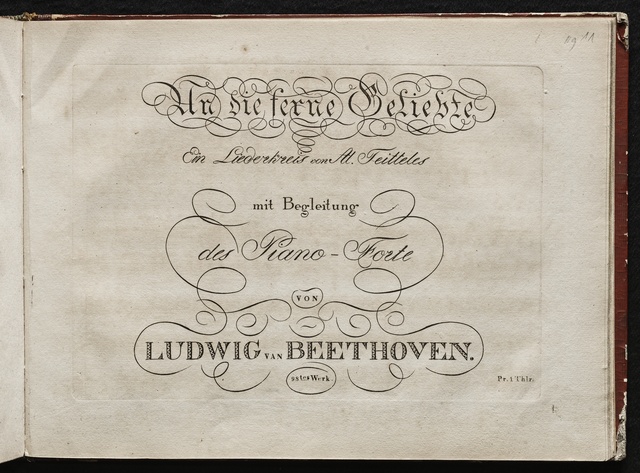 "An die ferne Geliebte" - das Autograph überschrieb Beethoven mit "An die entfernte Geliebte" - wurde lange Zeit als Ausdruck der Seelenlage des Komponisten gedeutet, der sich innerlich von einer unmöglichen Liebe verabschiedet. Neue Forschungen von Birgit Lodes lassen jedoch darauf schließen, dass die ferne Geliebte nicht etwa Beethovens eigene Beziehungen illustriert, sondern vielmehr der im Januar 1816 verstorbenen Ehefrau des Widmungsträgers Fürst Lobkowitz (einem in Wien bekannten Sänger) ein Denkmal setzt. (J.R.)