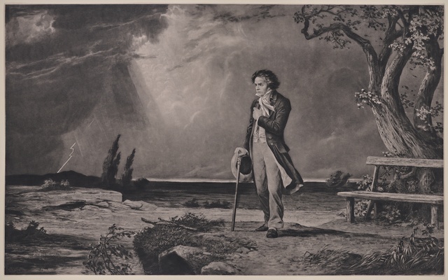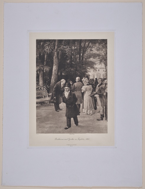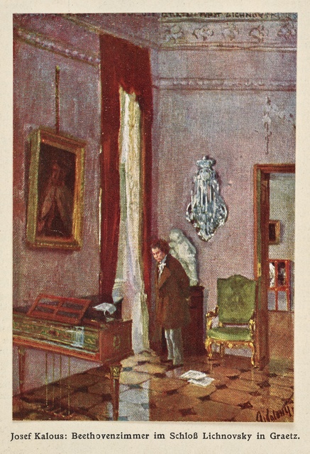 Beethoven beim Komponieren in seinem Studierzimmer, im Morgengrauen - Gemälde von Rudolf Eichstaedt, Heliogravüre der Druckerei Meisenbach, Riffarth & Co., erschienen im Verlag Paul Sonntag, Berlin, um 1900?