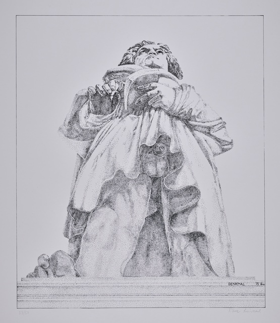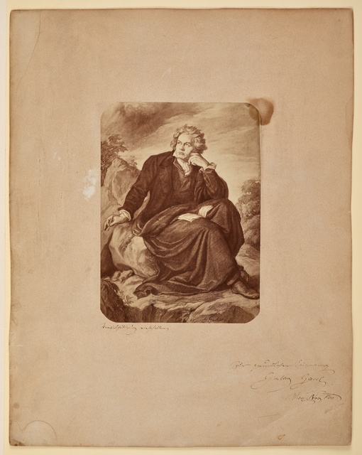 Ludwig van Beethoven, ganzfigurig, sitzend, Entwurf für die Musikzimmer-Sequenz im Film "Ludwig van" - Film und Szenenbild von Mauricio Kagel, Collage von Brigitte Dannehl nach einem Porträt von Carl Jaeger, Köln, 1969