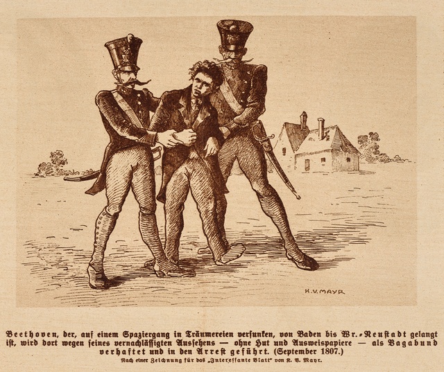 Ludwig van Beethoven, ganzfigurig, stehend, Entwurf für die Musikzimmer-Sequenz im Film "Ludwig van" - Film und Szenenbild von Mauricio Kagel, Collage von Brigitte Dannehl nach einem Porträt von Ferdinand Georg Waldmüller, Köln, 1969