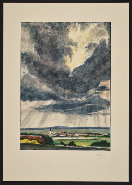 Landschaft bei Rohrau (Niederösterreich) - Zeichnung von Igo Pötsch, Kunstdruck, gedruckt vom Künstler selbst im Homogen Offsetverfahren, Wien, 1932