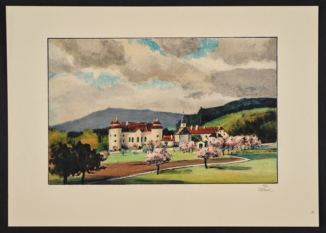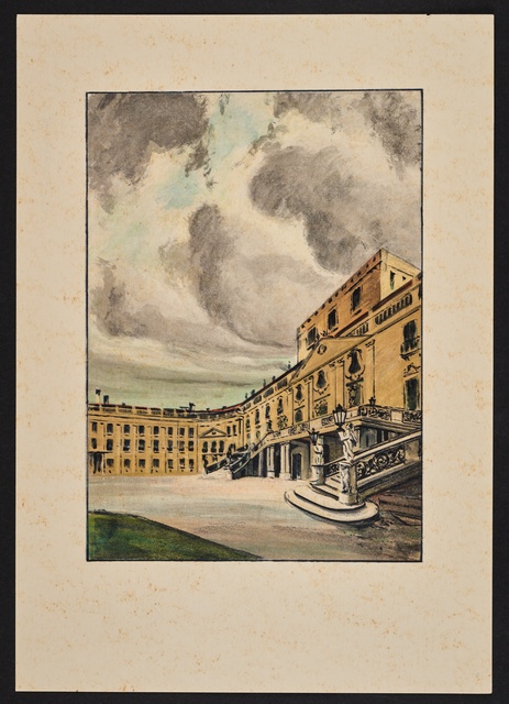 Schloss Esterháza in Fertőd (Ungarn) - Zeichnung von Igo Pötsch, Kunstdruck, gedruckt vom Künstler selbst im Homogen Offsetverfahren, Wien, 1932