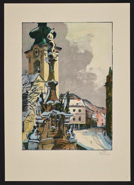 Hainburg an der Donau - Zeichnung von Igo Pötsch, Kunstdruck, gedruckt vom Künstler selbst im Homogen Offsetverfahren, Wien, 1932