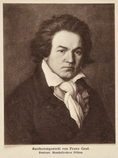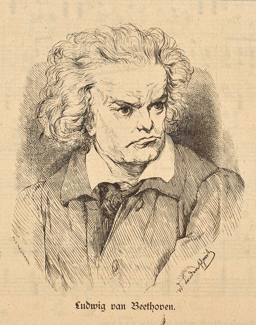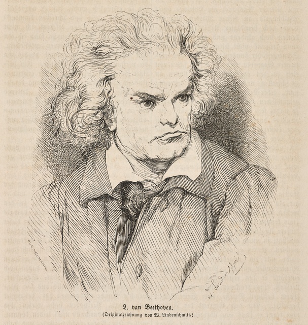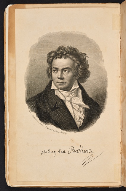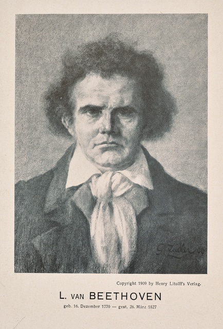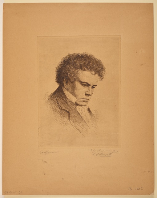 Ludwig van Beethoven - Lithographie von Carl Fischer aus dem Jahr 1843 nach der Lithographie von Theodor Neu aus dem Jahr 1842, die nach einer Zeichnung von August von Kloeber aus dem Jahr 1822 gemacht wurde, gedruckt bei Gebrüder Delius in Berlin, im Kommissionsverlag von Trautwein, Berlin, nach 1849