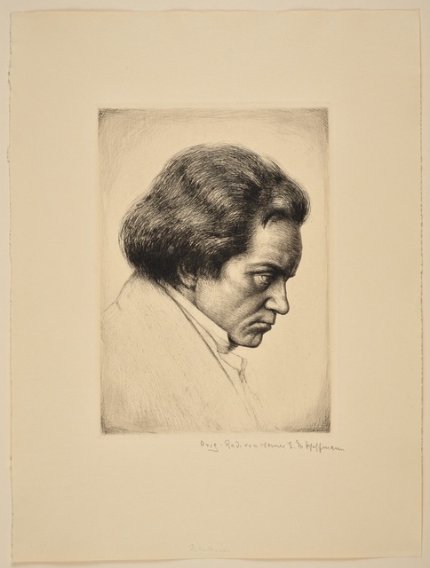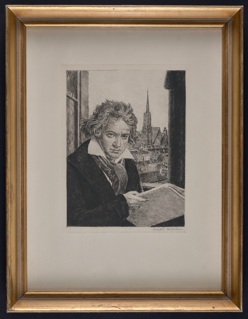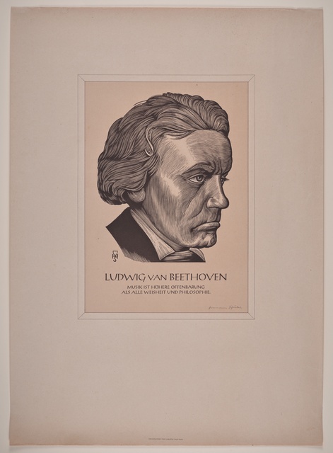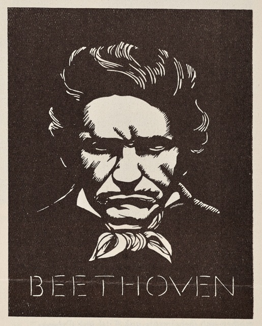 Ludwig van Beethoven - Silhouette von Hildegard Knoll von 1927, Reproduktionsdruck, Scherenschnitt, gedruckt von der Druckerei Christoph Reißer in Wien, erschienen beim Österreichischen Jugendrotkreuz, Wien, 1927