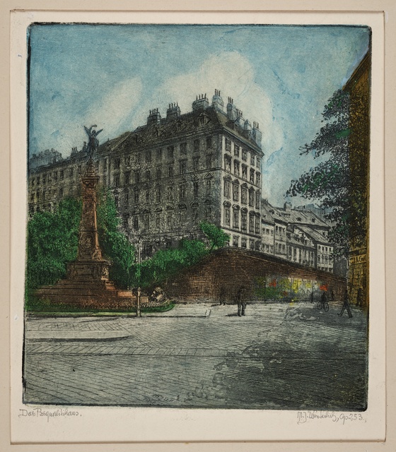 Wien, Silbergasse 4/Nusswaldgasse 2, Wohnung von Ludwig van Beethoven, Außenansicht, von der Straßenecke aus gesehen - Kolorierte Radierung von Gerson Kovács nach einer eigenen Zeichnung, Wien, um 2001