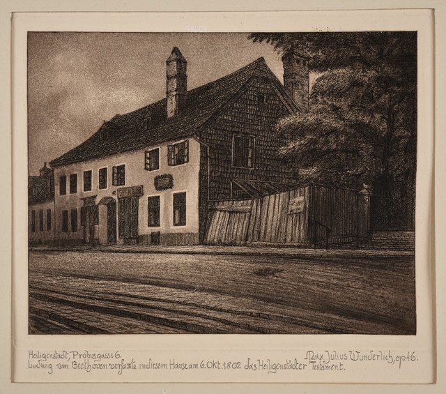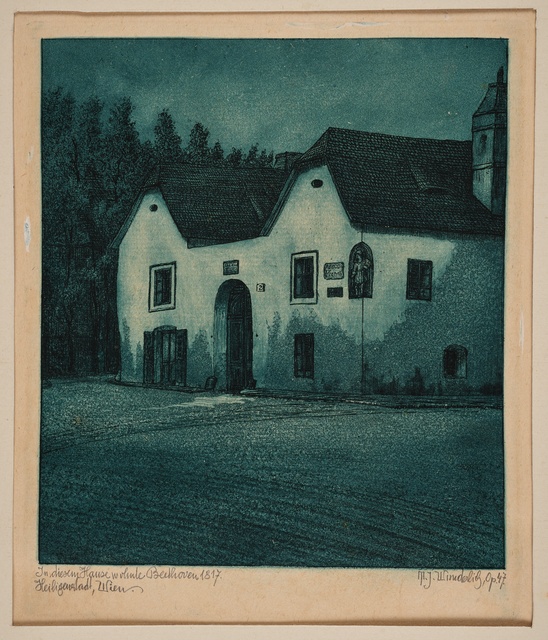 Wien, Nußdorf, Kahlenberger Straße 26, Wohnung von Ludwig van Beethoven, (Greinersches Haus), Straßenansicht - Radierung von Schall nach einer eigenen Zeichnung, Wien, um 1928