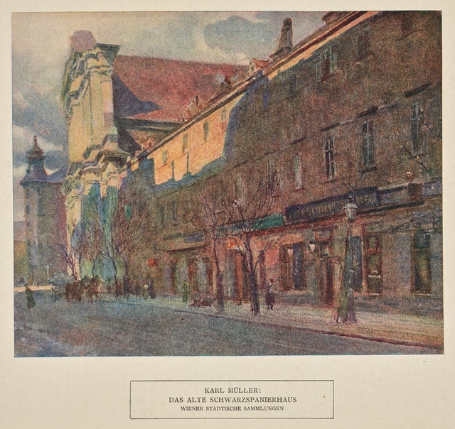 Wien, Alsergrund, Schwarzspanierstraße 15, "Das alte Schwarzspanierhaus", Wohnung von Ludwig van Beethoven - Aquarell von Karl Müller, 2. Hälfte 19. Jahrhundert, Reproduktionsdruck, Deutsche Verlags-Anstalt, Stuttgart, Berlin und Leipzig, 1927