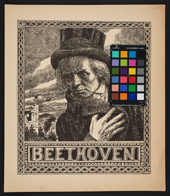 Beethoven in stürmischer Landschaft - Fotografie eines Stiches von Paul Barfus nach einem Gemälde von Fritz Schwörer
