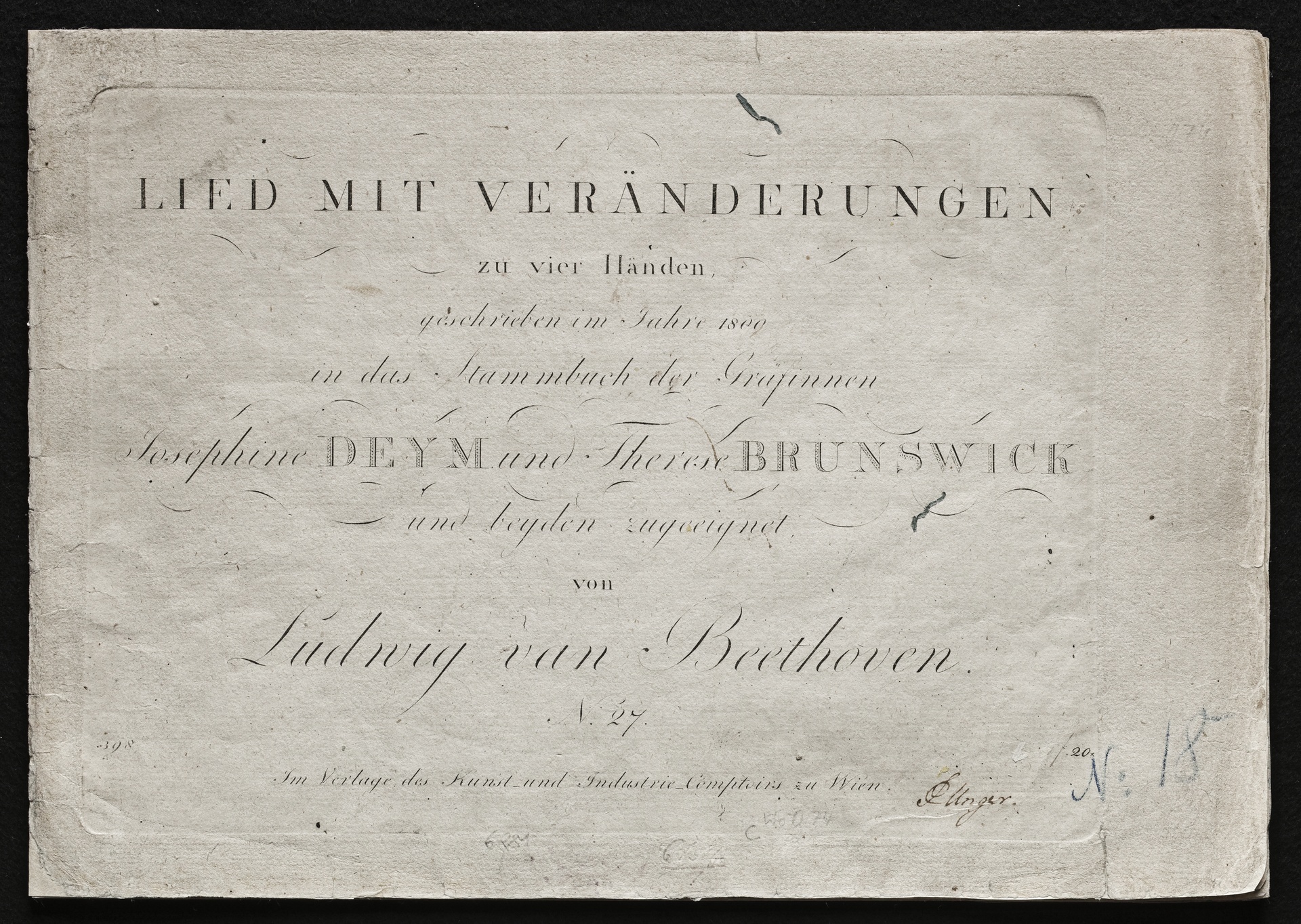 Ludwig van Beethoven, "Ich denke dein", Lied für Singstimme und Klavier zu 4 Händen und Variationen für Klavier zu 4 Händen (D-Dur) WoO 74, Bureau des Arts et d'Industrie, 398