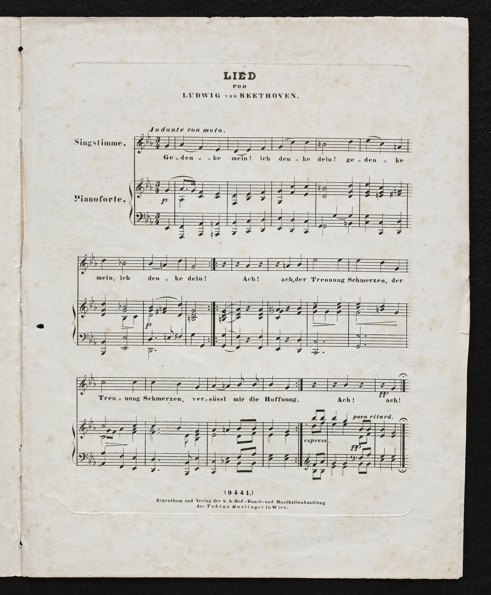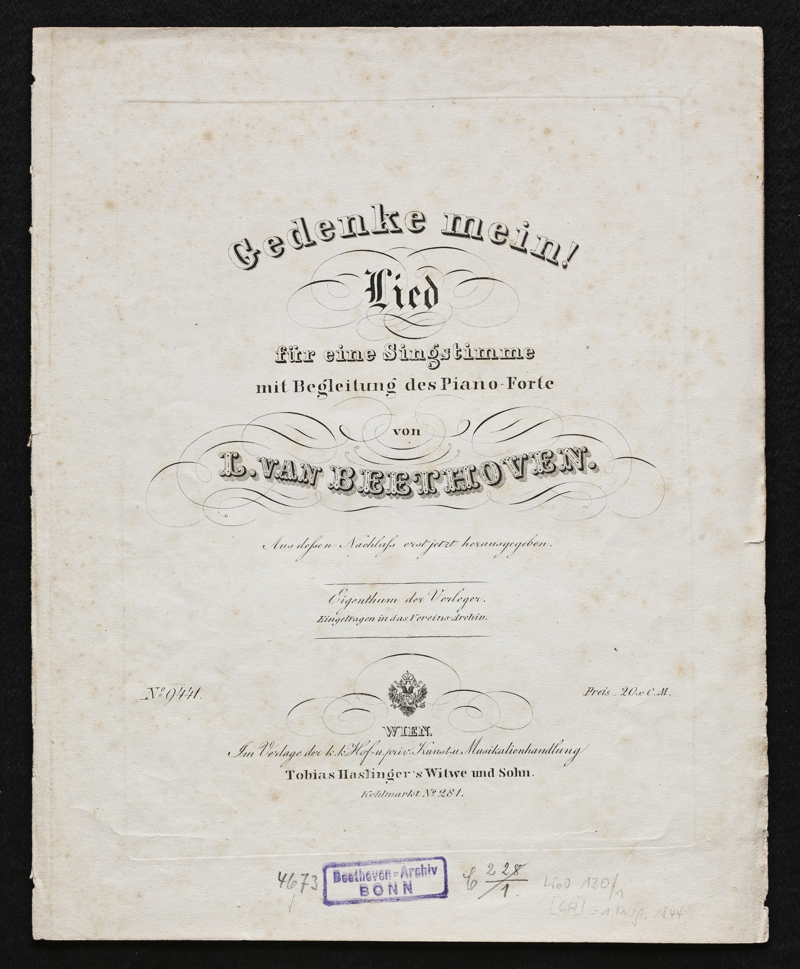 Ludwig van Beethoven, "Gedenke mein", Lied für Singstimme und Klavier WoO 130, Haslinger, 9441