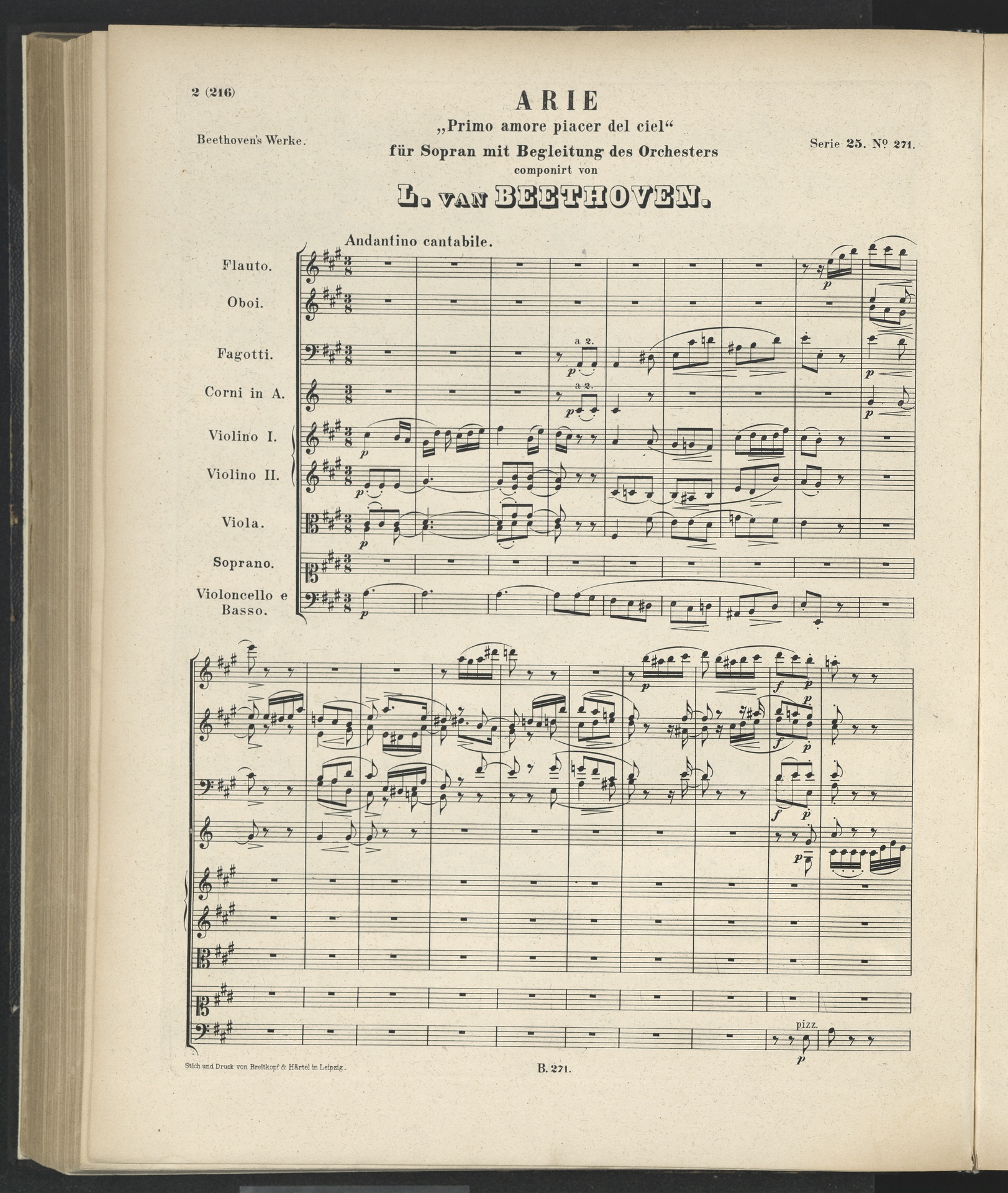 Ludwig van Beethoven, "Primo amore", Szene und Arie für Sopran und Orchester WoO 92, Partitur, Breitkopf und Härtel, 271