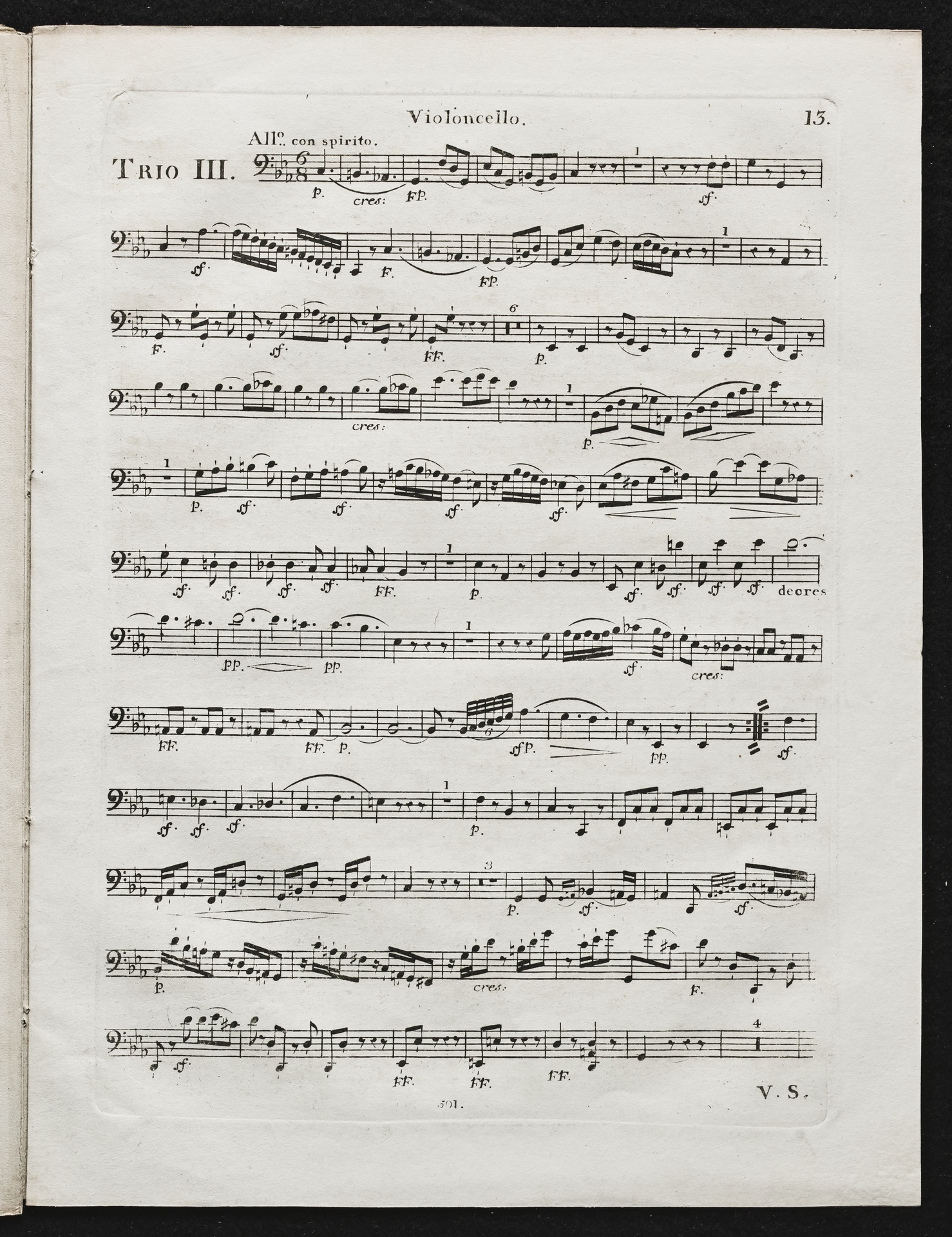 Ludwig van Beethoven, Trios für Violine, Viola, Violoncello (c-Moll) op. 9, 3, Bearbeitung für Violine, Violoncello und Klavier von Ferdinand Ries, Stimmen, Simrock, 501