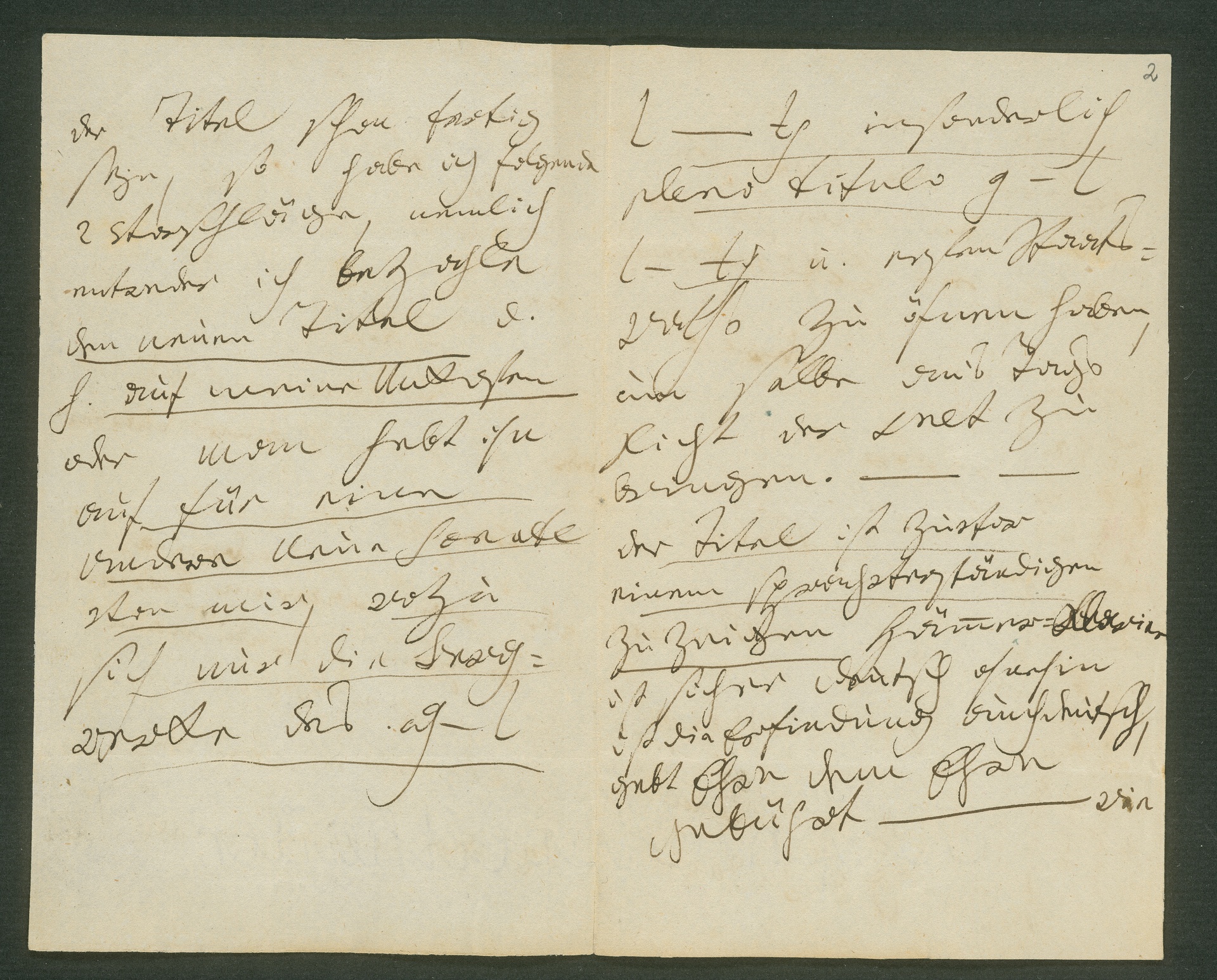Beethoven informs the publishing assistant Haslinger of the exact words for the title of op. 101 as well as the dedication. Should the title page already have been printed, he asks him to have a new one made at his (Beethoven's) expense or to keep the new title for his next sonata. In addition he asks him to show the term "Hammer-Klawier" to a language expert to ensure that it really is German. (In the end the word "Hammerklavier" appeared on the title page.)