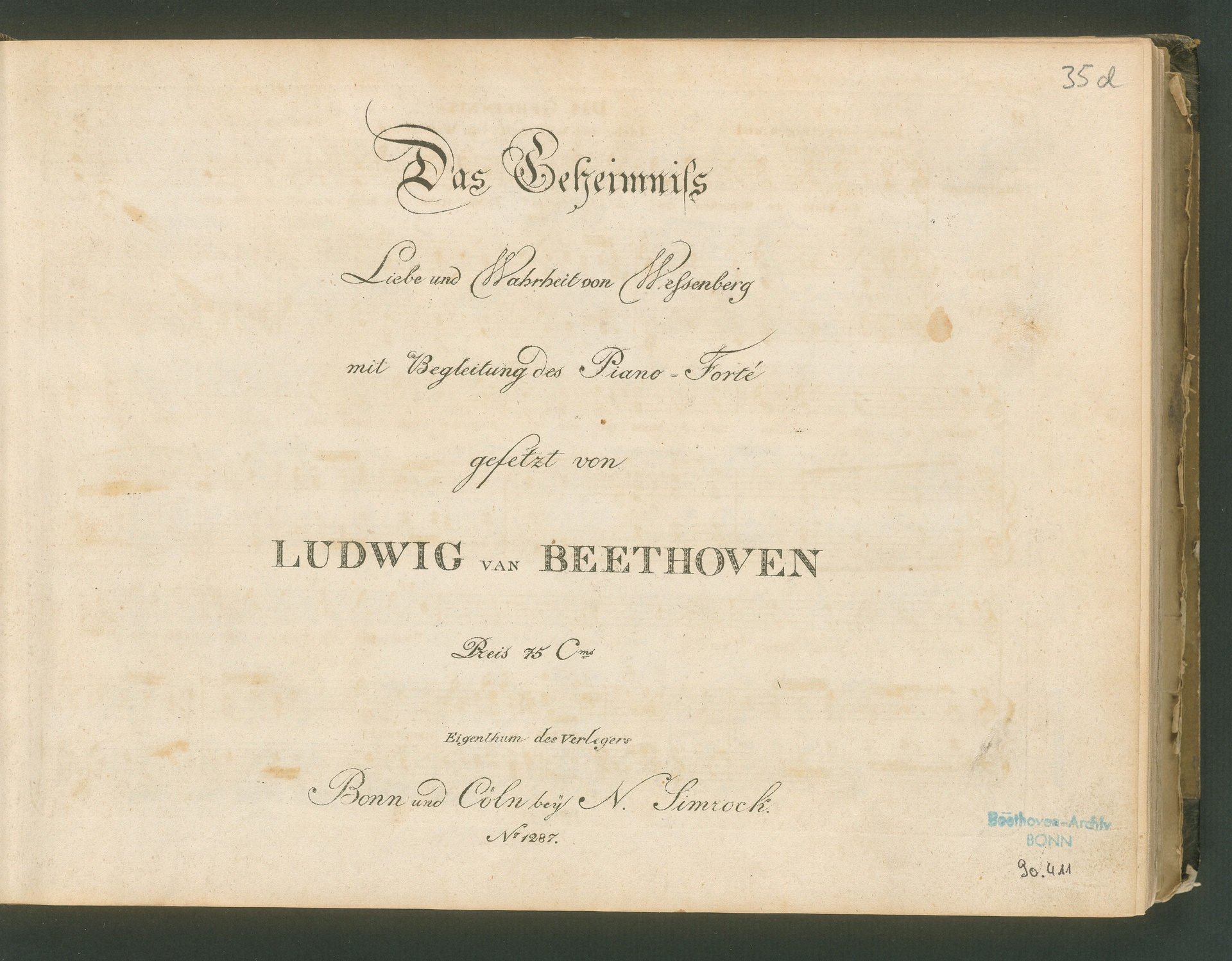 Ludwig van BeethovenIgnaz Heinrich von Wessenberg, "Das Geheimnis", Lied für Singstimme und Klavier WoO 145, Simrock, 1287