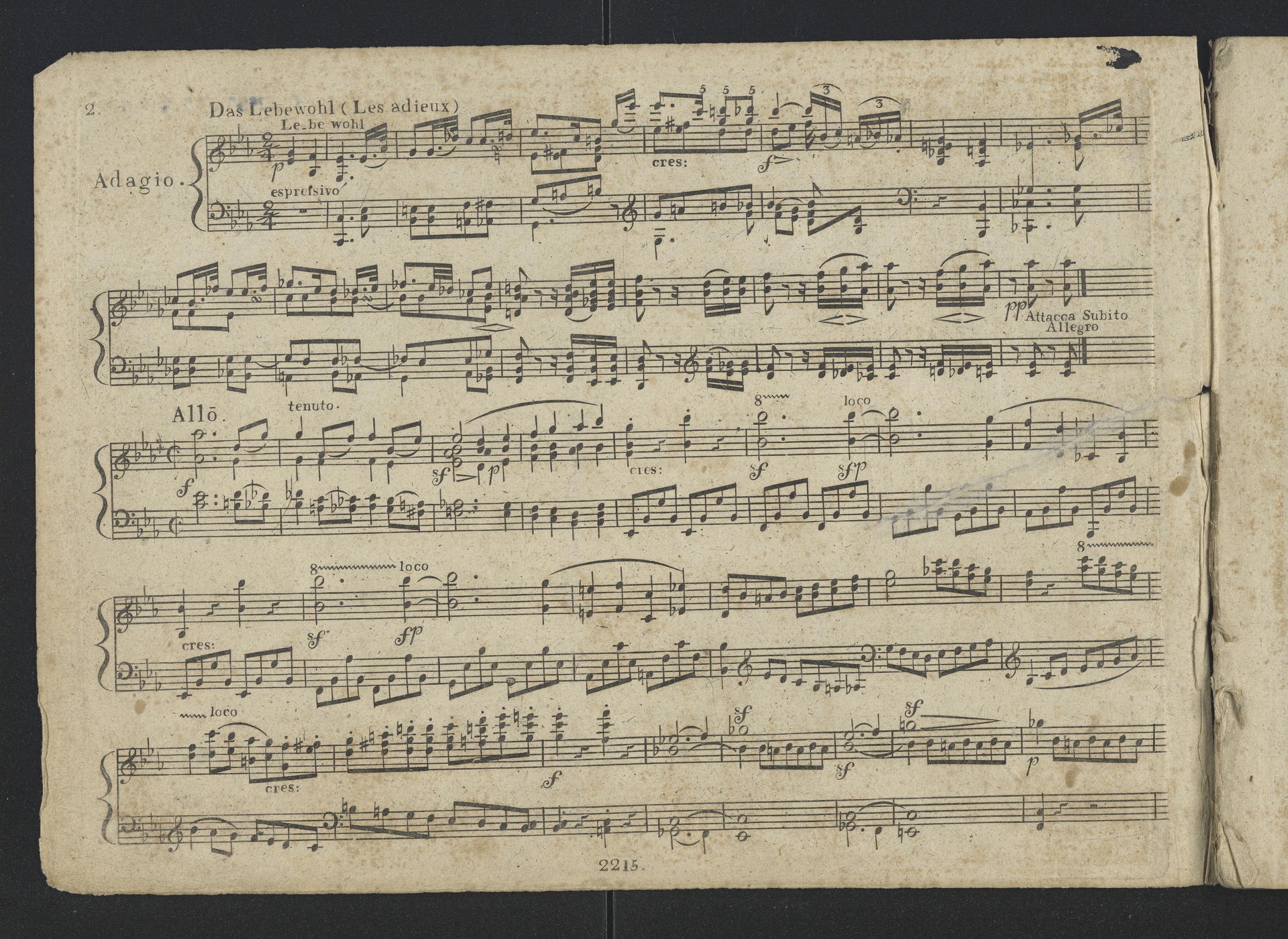 Ludwig van Beethoven, Sonate für Klavier (Es-Dur) op. 81a, Artaria, 2215