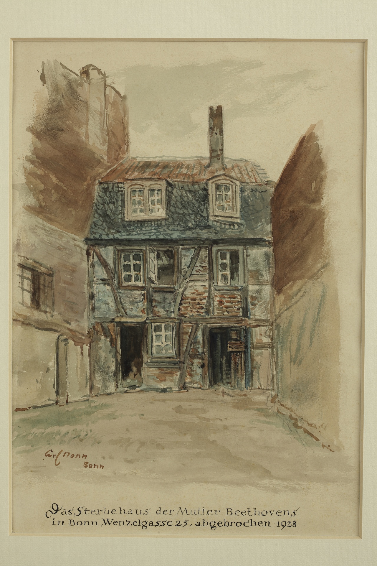 Bonn, Wenzelgasse, Wohnung der Familie Beethoven - Aquarell von Carl Nonn, entstanden kurz vor oder während der Abbrucharbeiten, Bonn, 1928