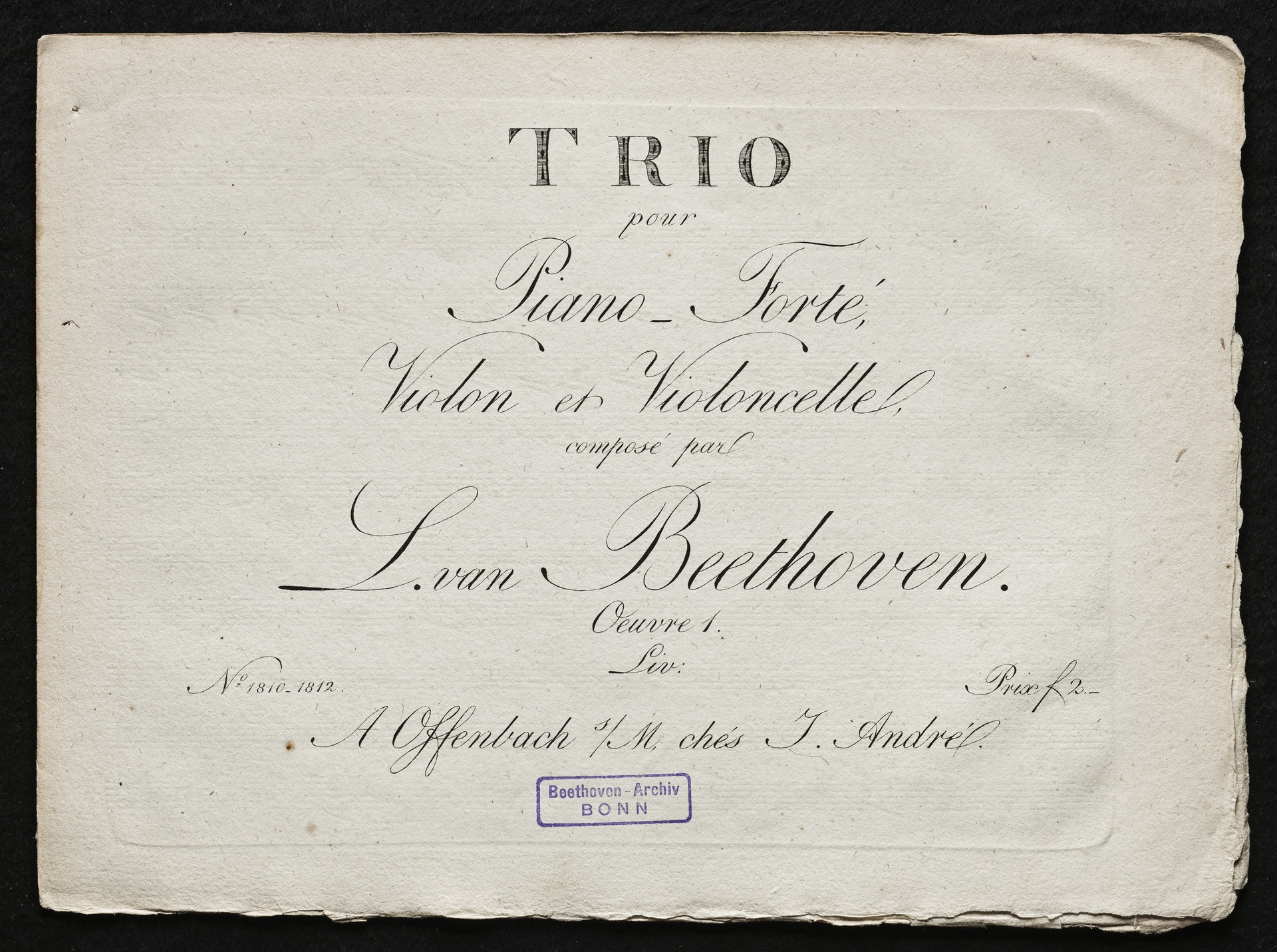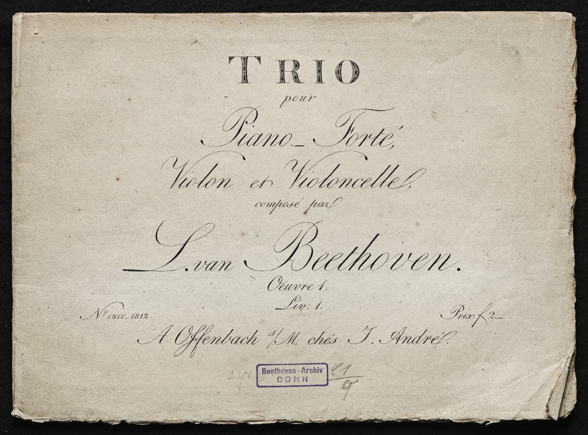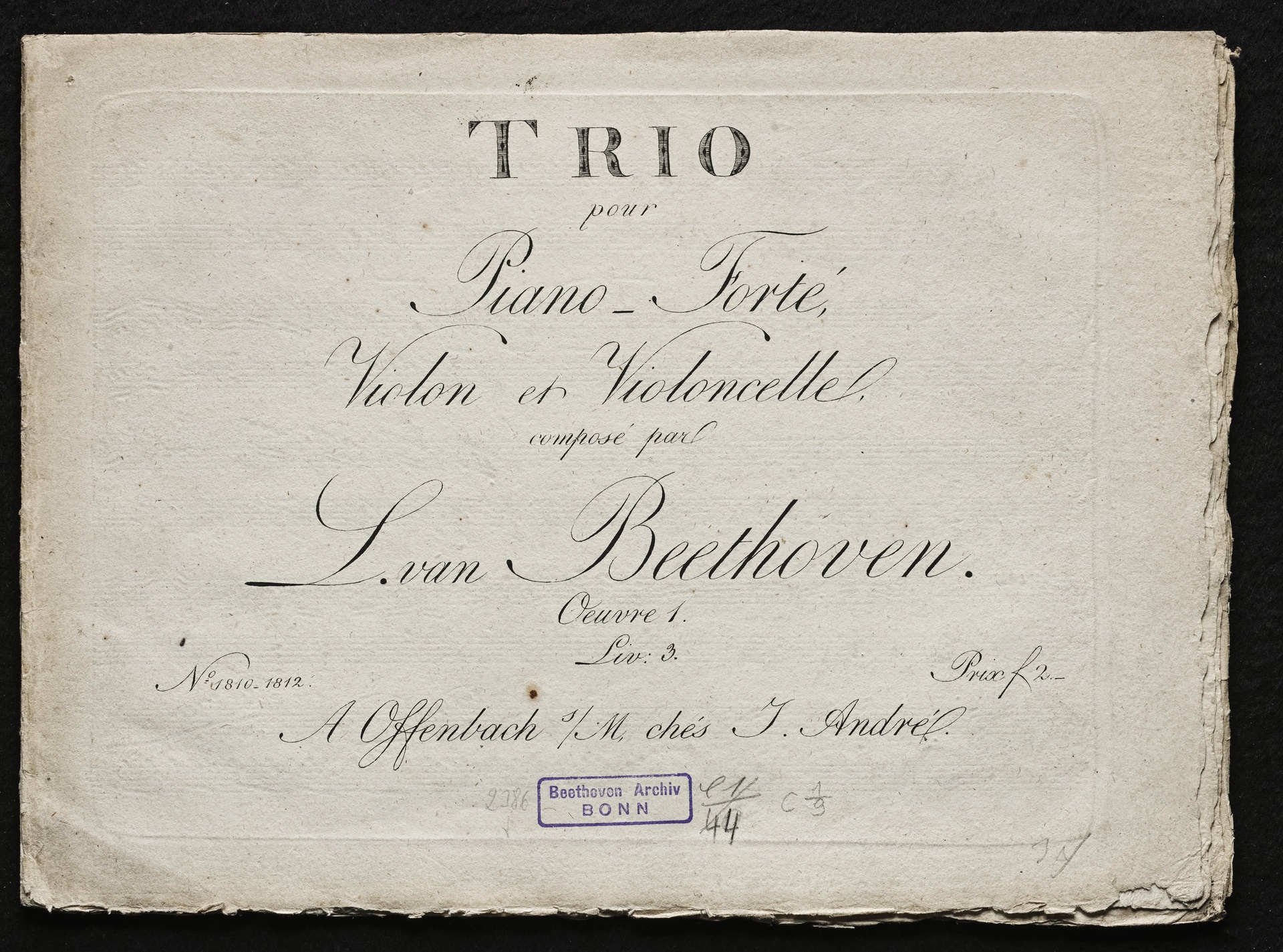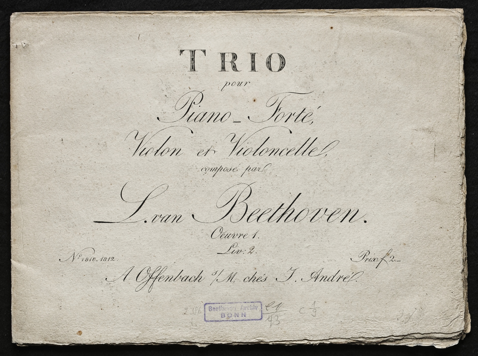 Ludwig van Beethoven, Trios für Klavier, Violine, Violoncello (Es-Dur, G-Dur, c-Moll) op. 1, 1-3, Stimmen, Artaria, 1810-1812