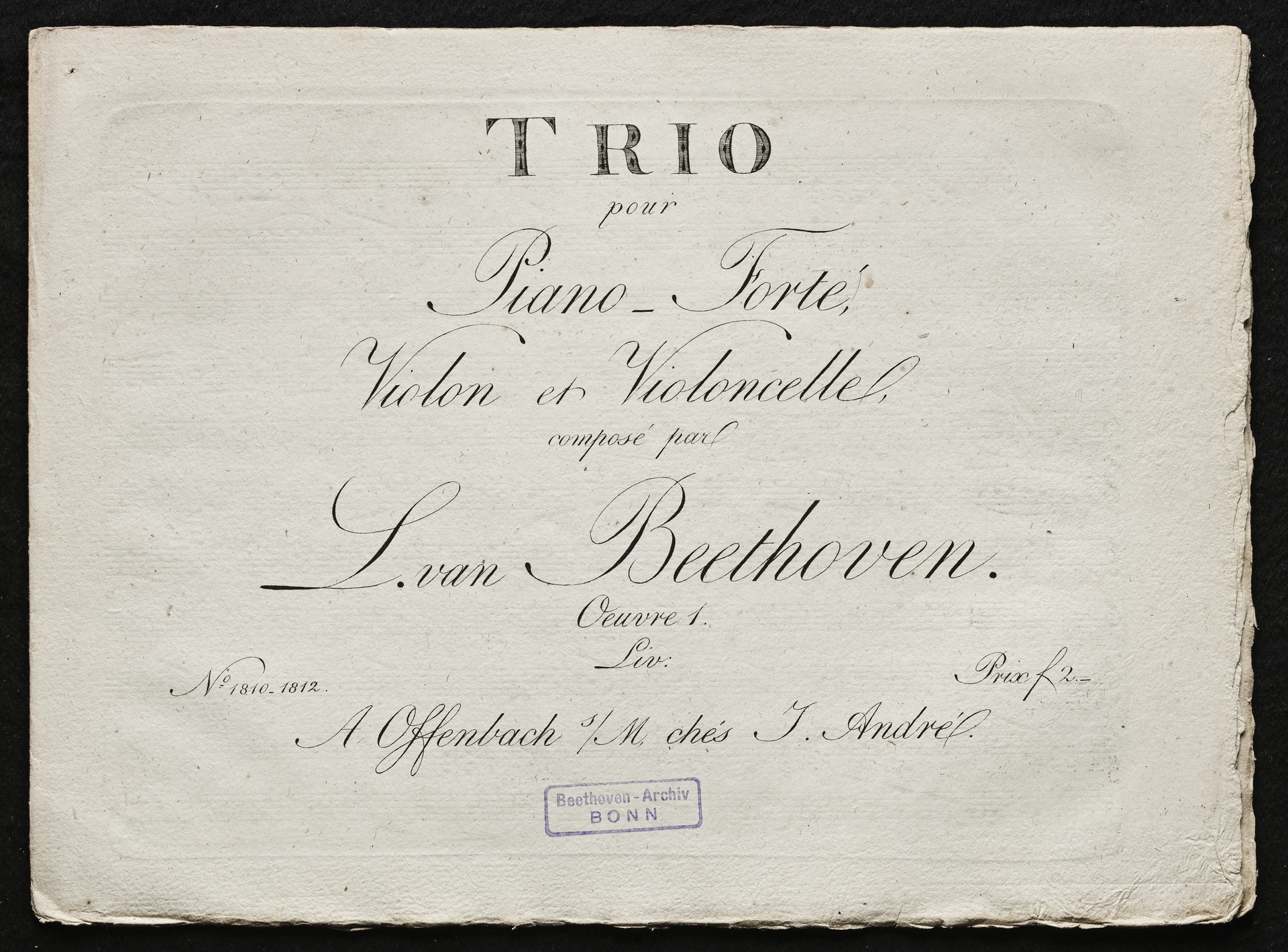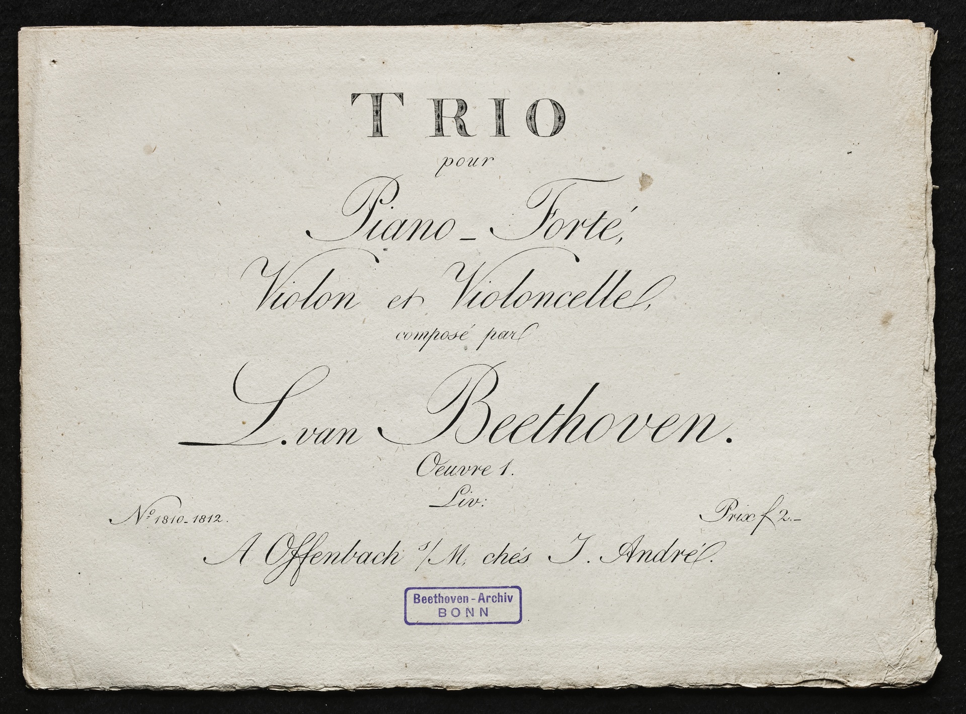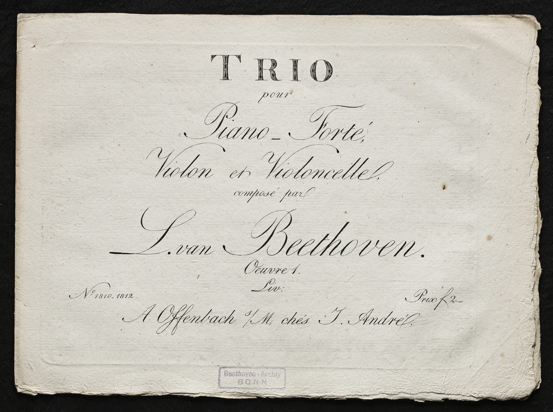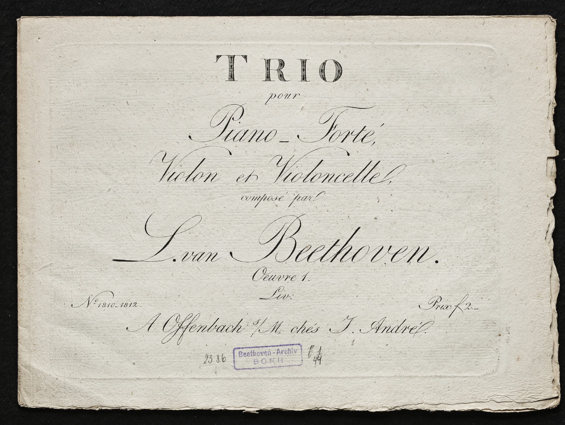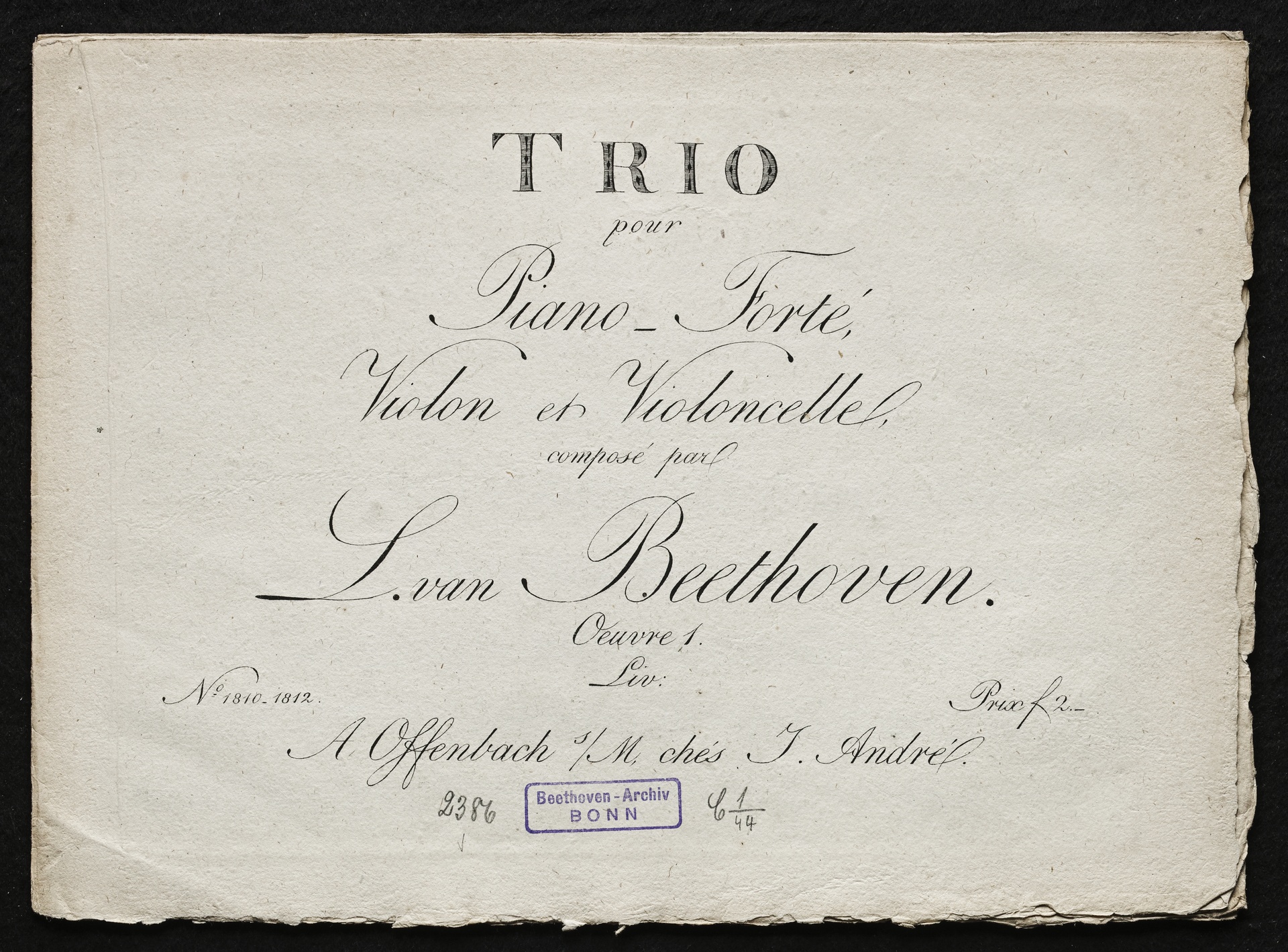 Ludwig van Beethoven, Trios für Klavier, Violine, Violoncello (Es-Dur, G-Dur, c-Moll) op. 1, 1-3, Stimmen, Artaria, 1810-1812