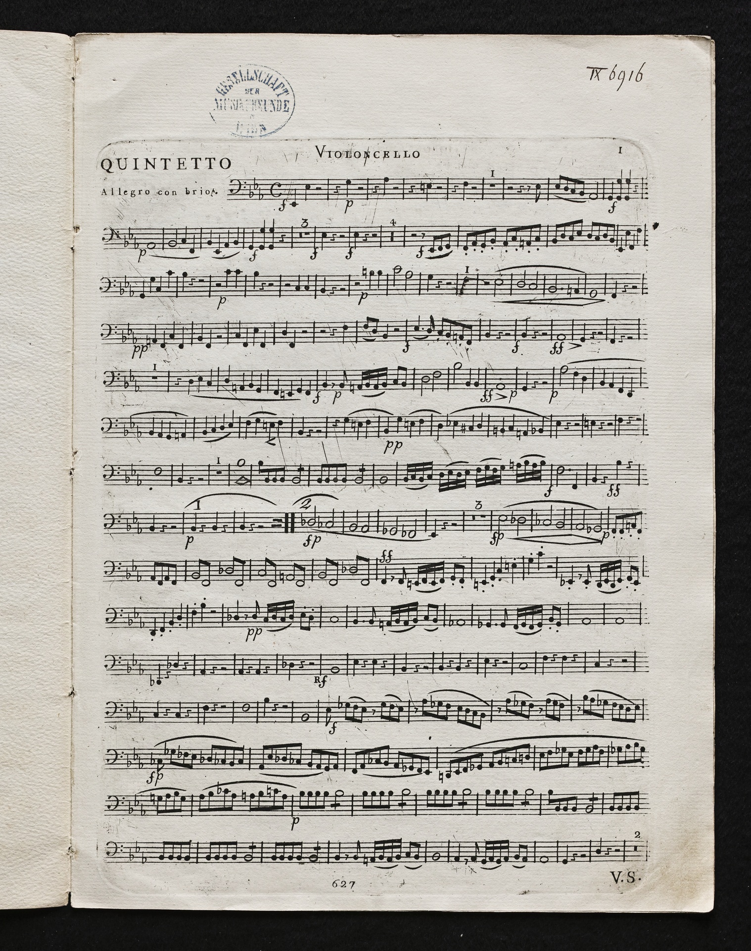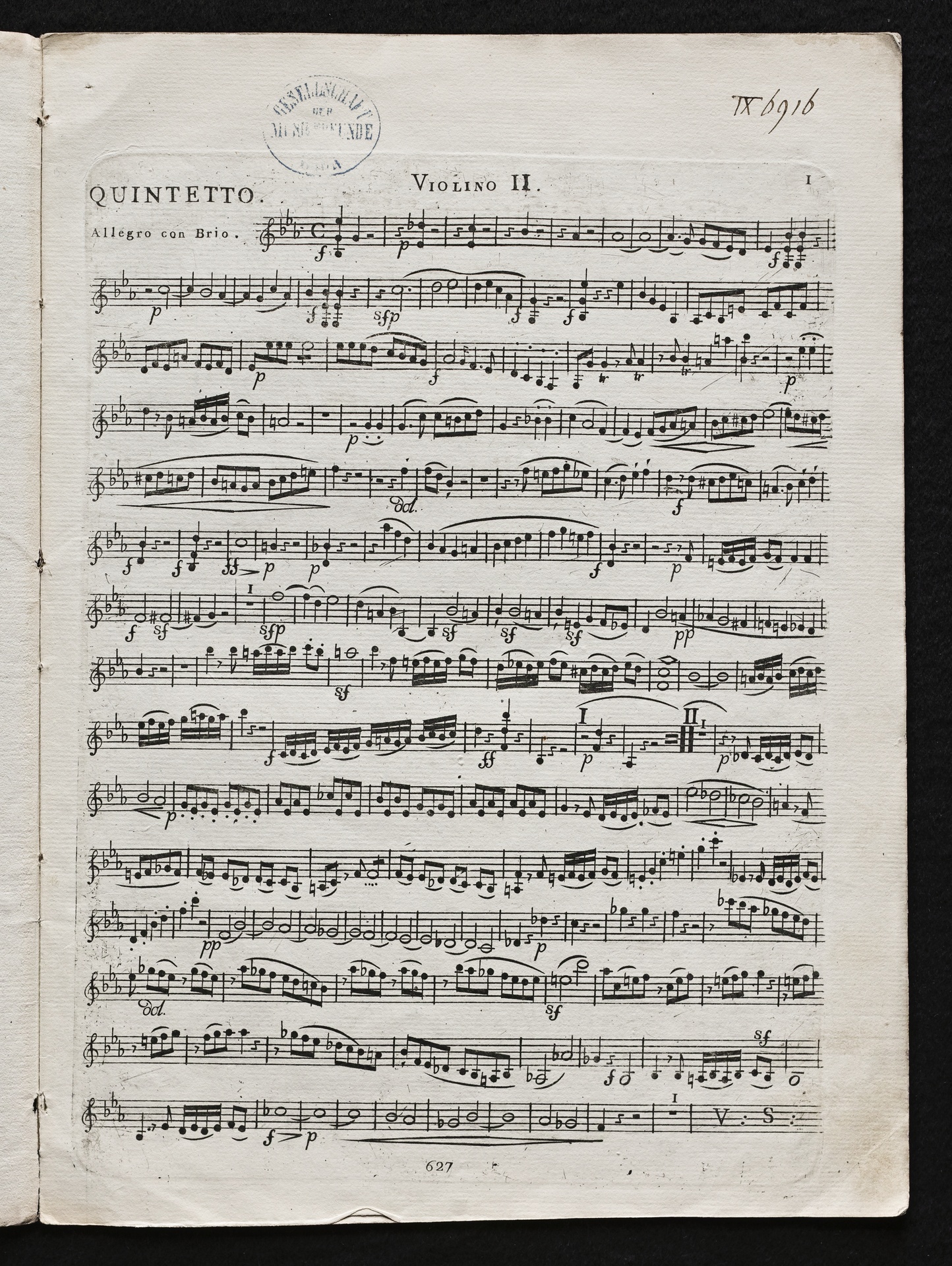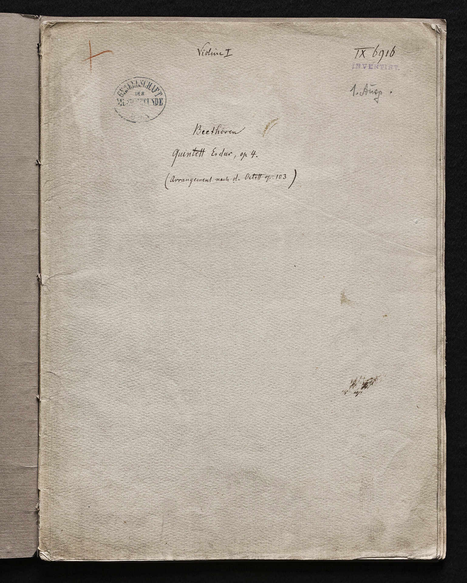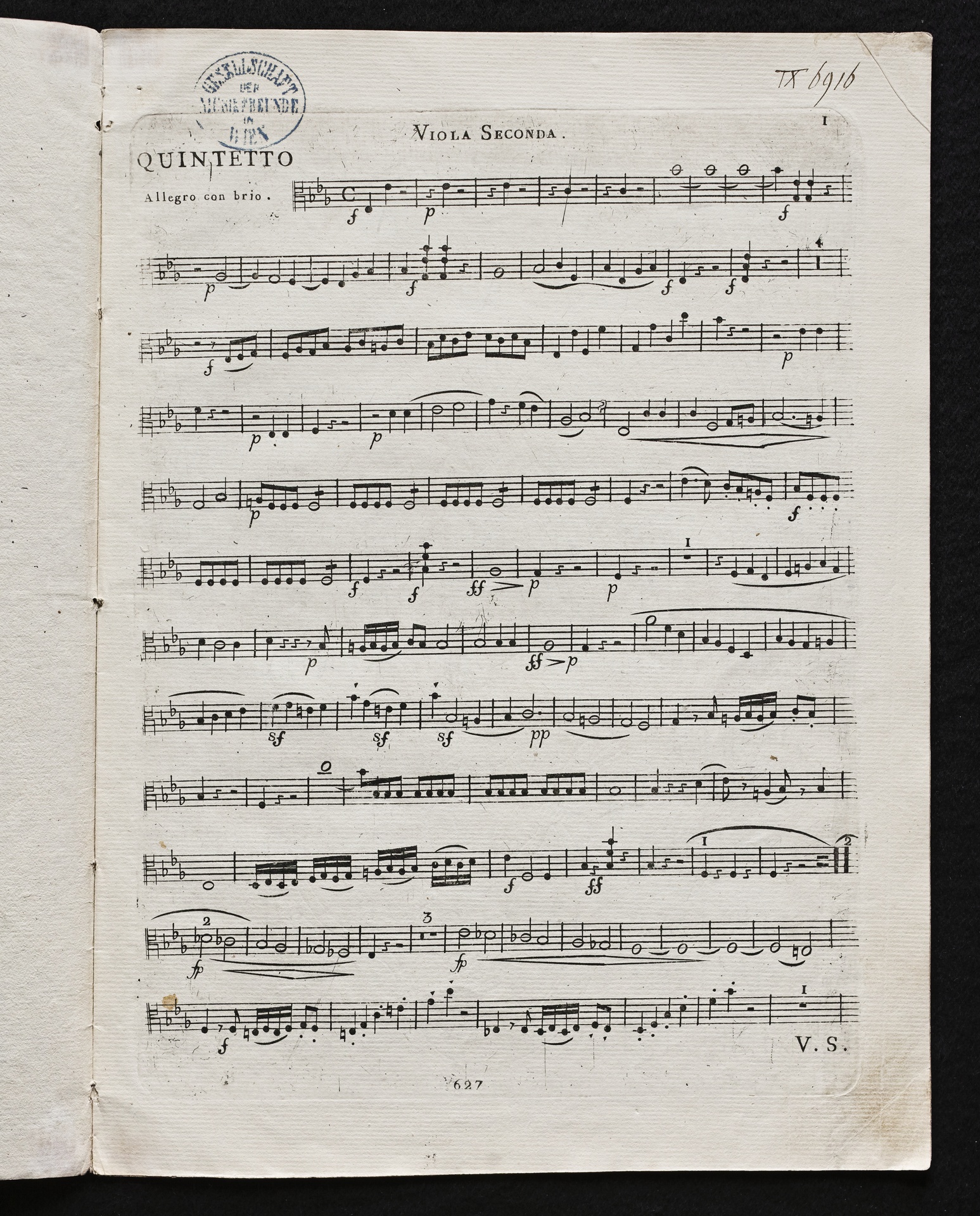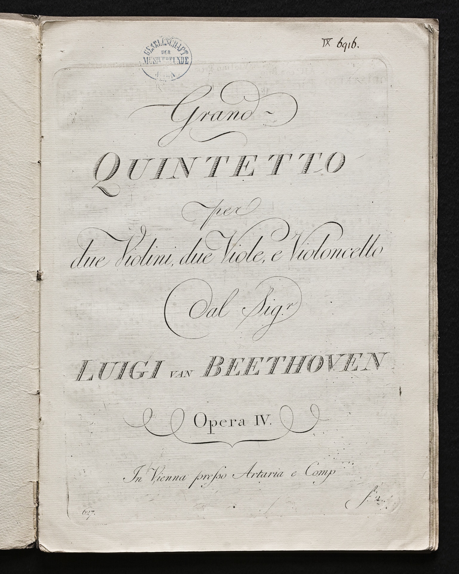 Ludwig van Beethoven, Quintett für 2 Violinen, 2 Violen, Violoncello (Es-Dur) op. 4, Stimmen, Artaria, 627
