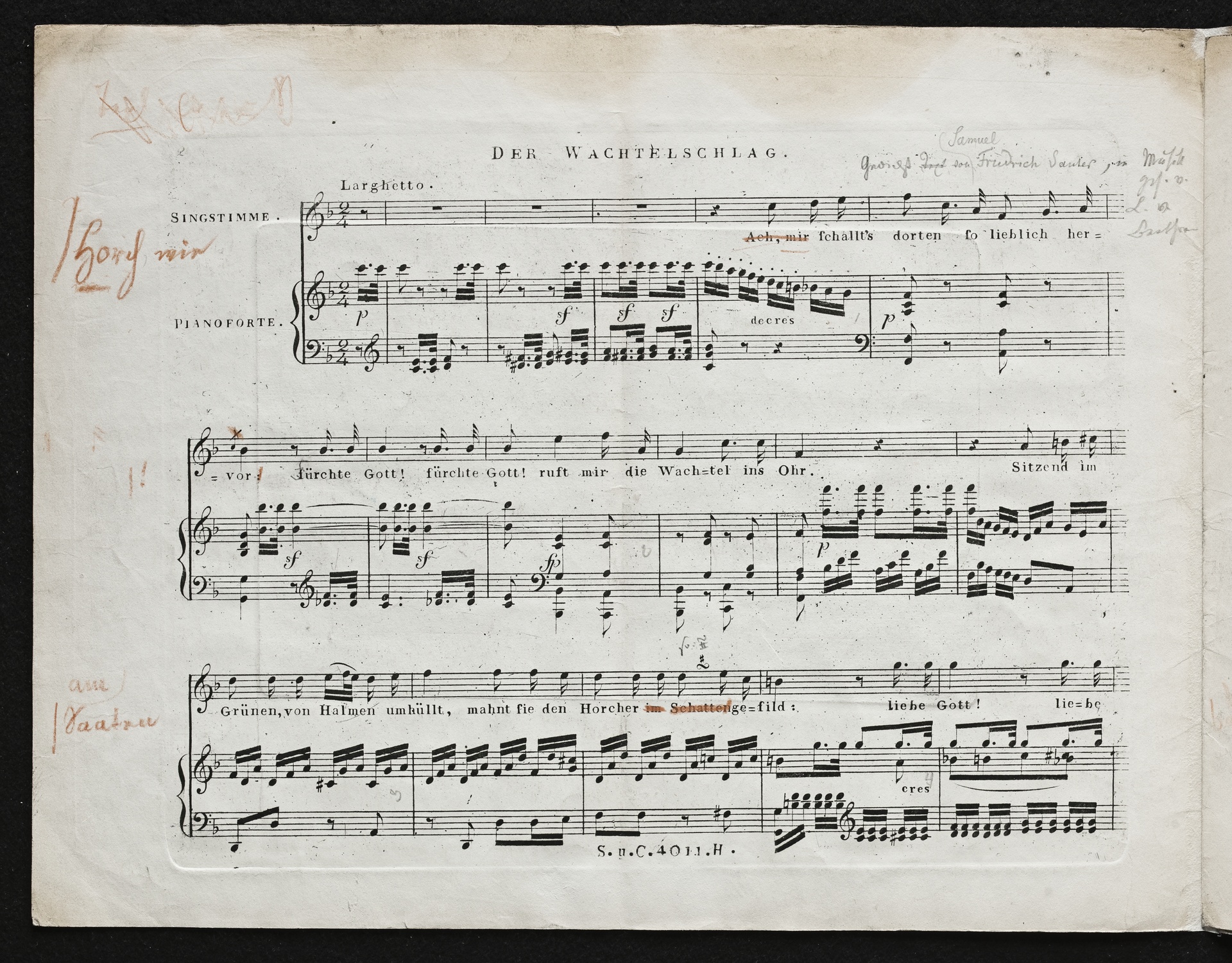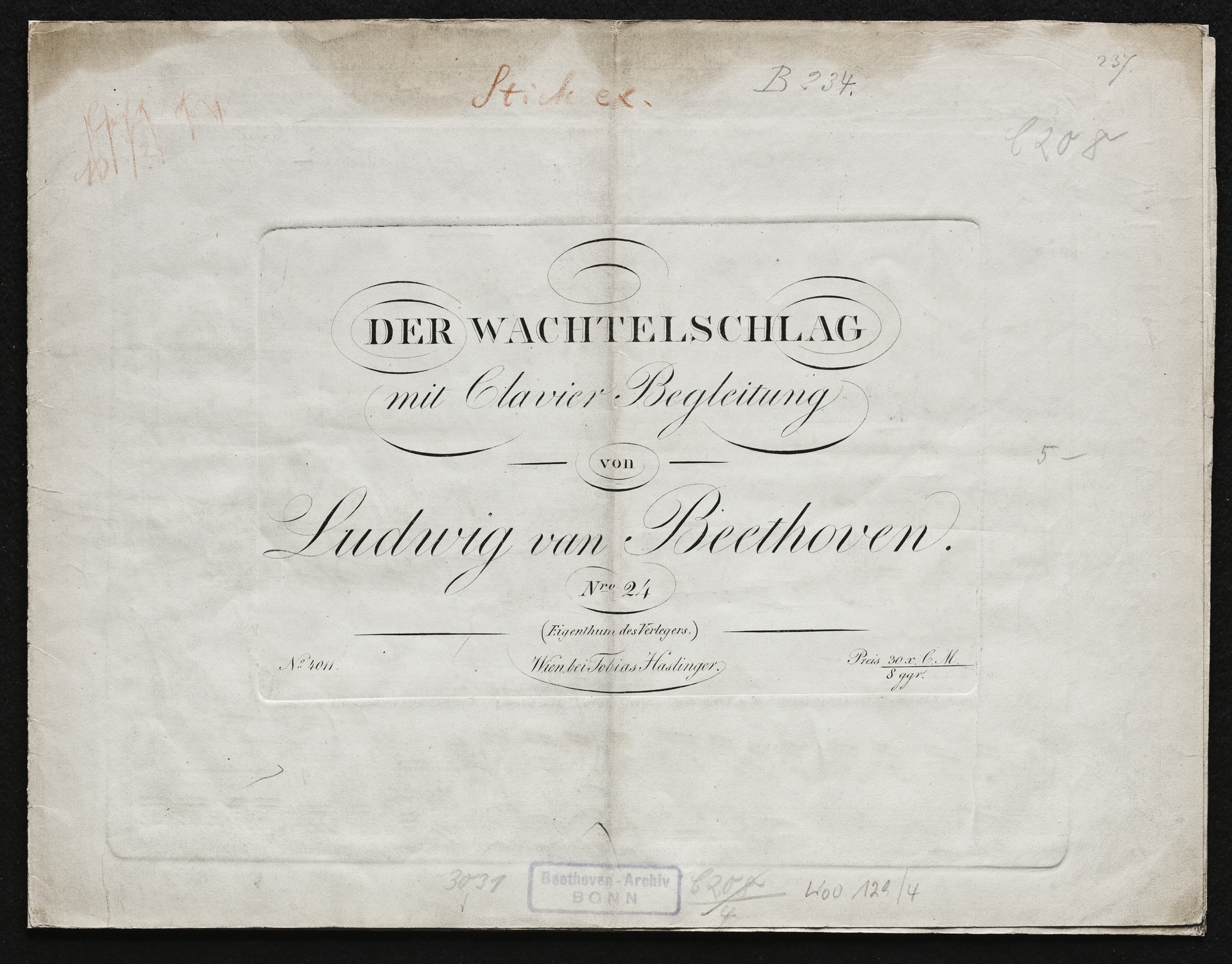 Ludwig van Beethoven, "Der Wachtelschlag", Lied für Singstimme und Klavier WoO 129, Haslinger, 4011