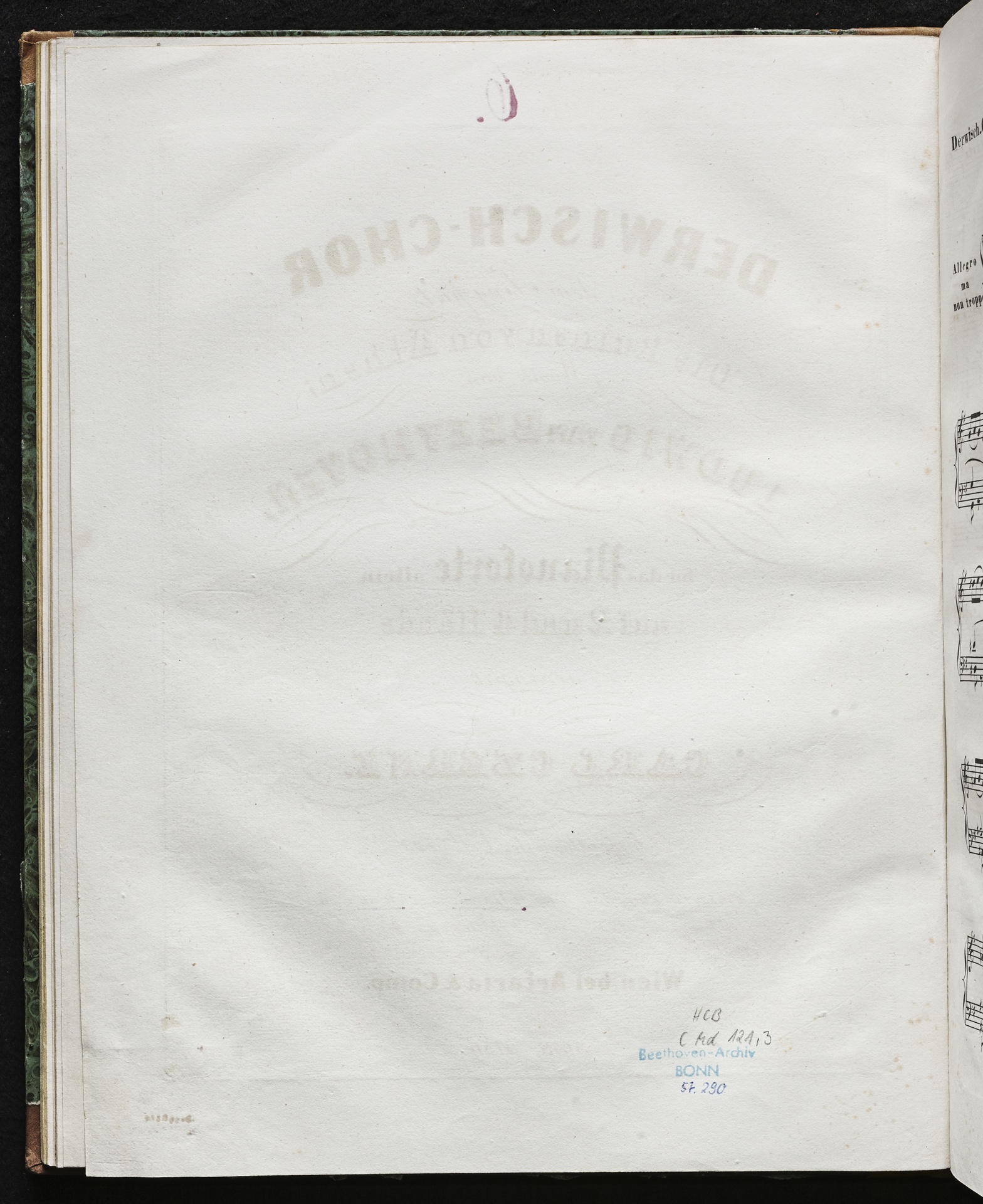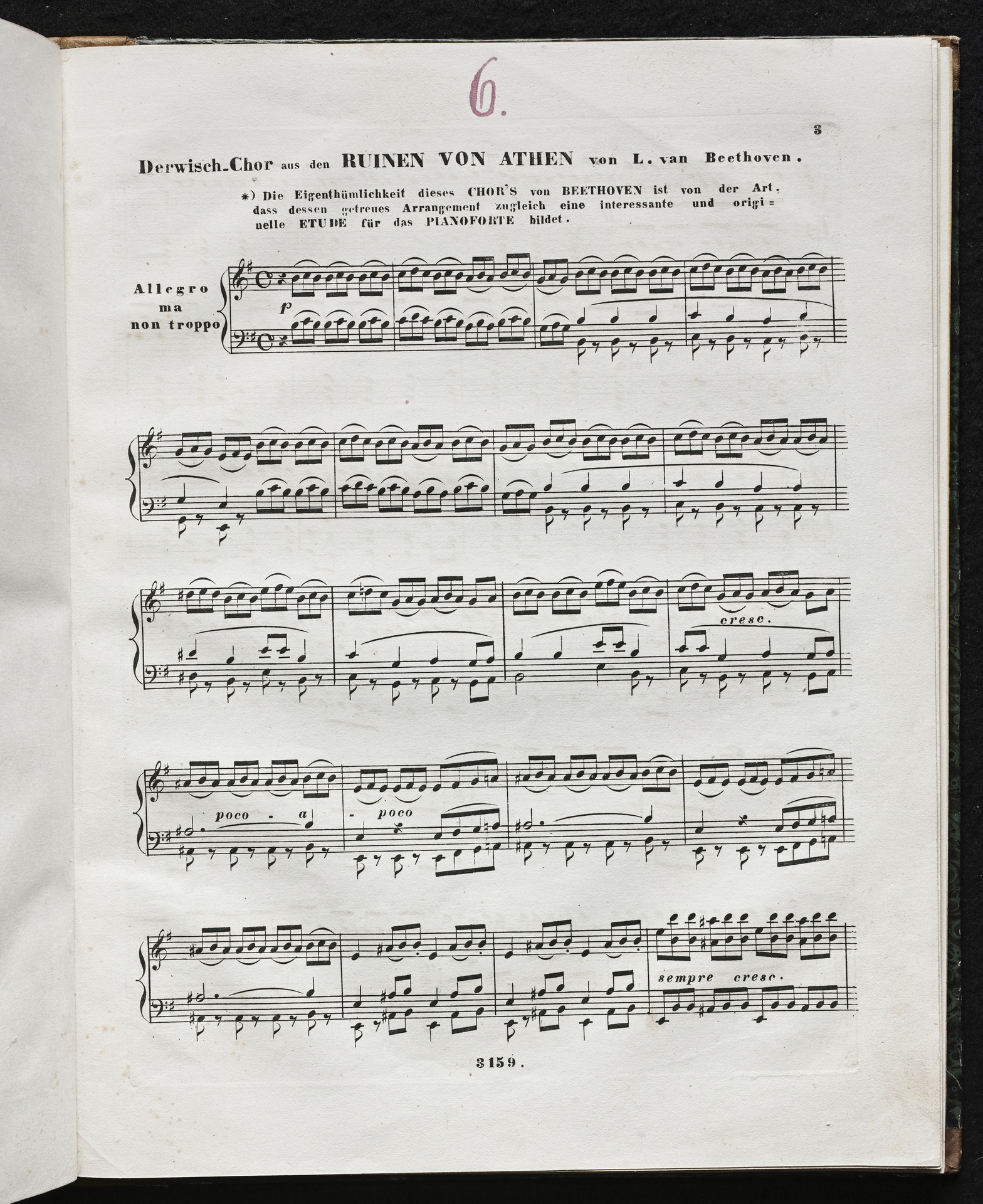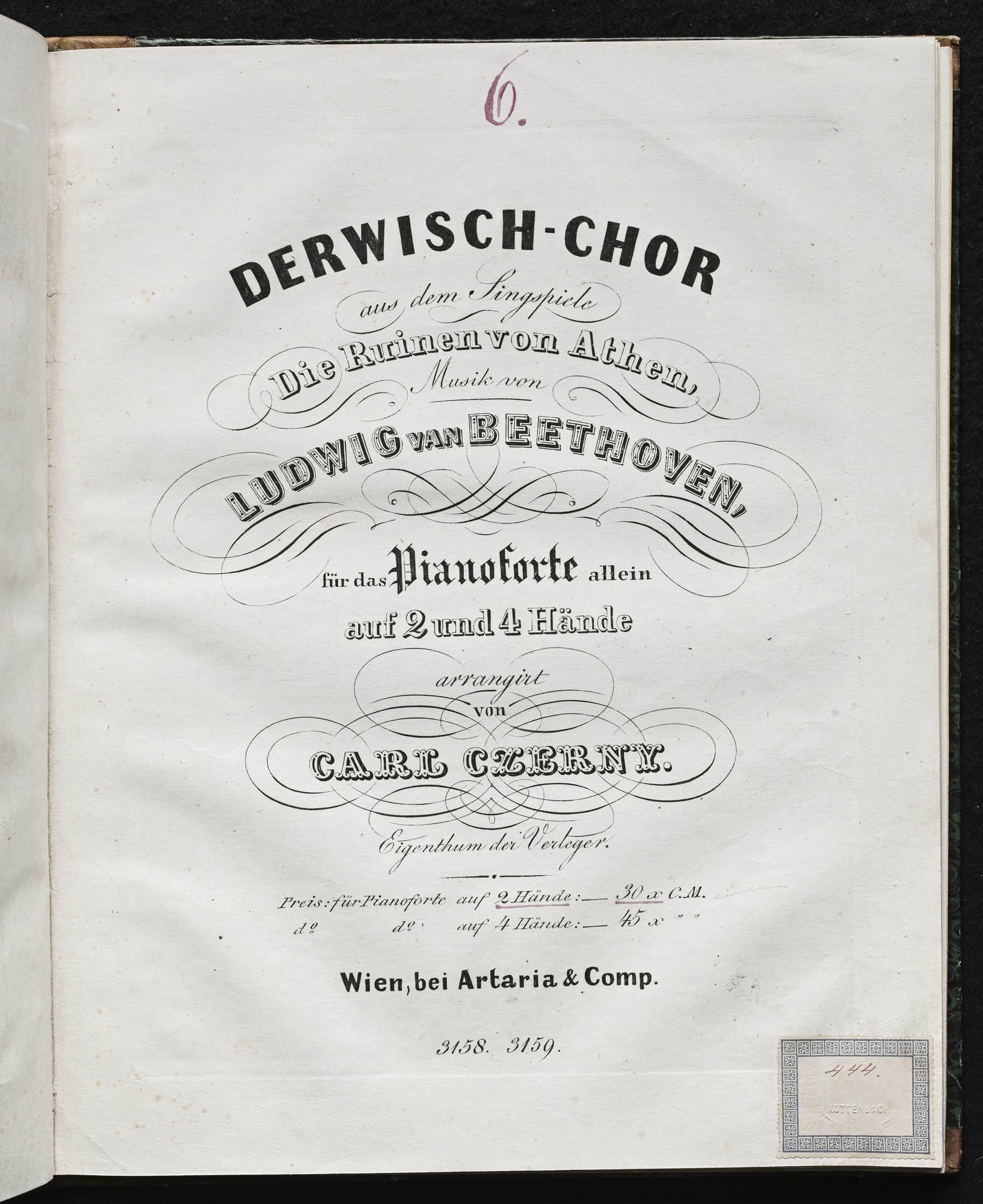 Ludwig van Beethoven, Musik zu August von Kotzebues Festspiel "Die Ruinen von Athen", Chor (Derwische) op. 113, 3, Bearbeitung für Klavier von Carl Czerny, Artaria, 3159