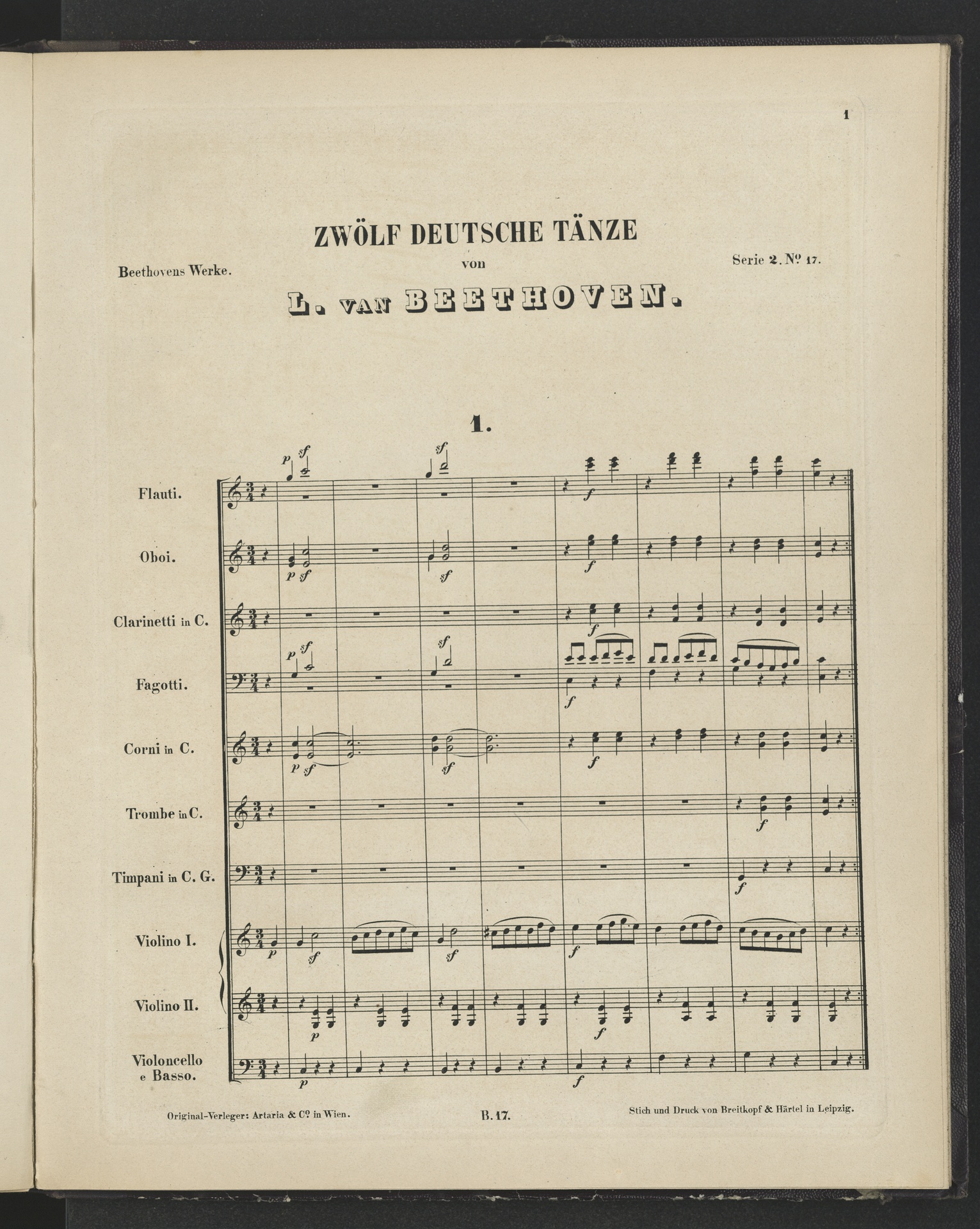 Ludwig van Beethoven, Deutsche Tänze für Orchester WoO 8, 1-12, Partitur, Breitkopf und Härtel, 17