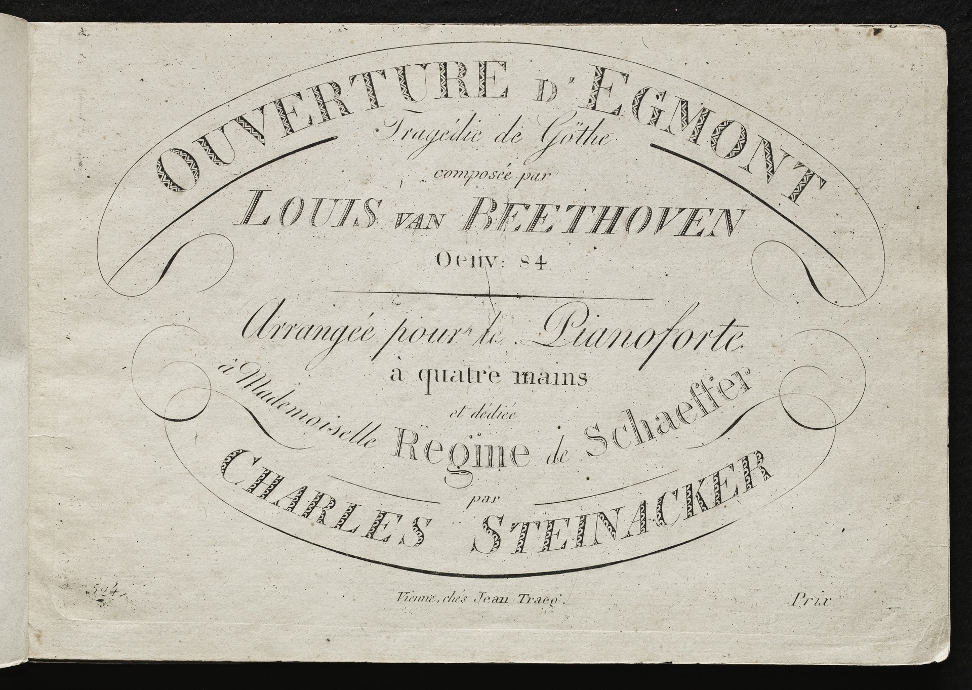 Ludwig van Beethoven, Musik zu Johann Wolfgang von Goethes Trauerspiel "Egmont" op. 84, Ouvertüre (f-Moll), Bearbeitung für Klavier zu 4 Händen von Carl Steinacker, Traeg, 524