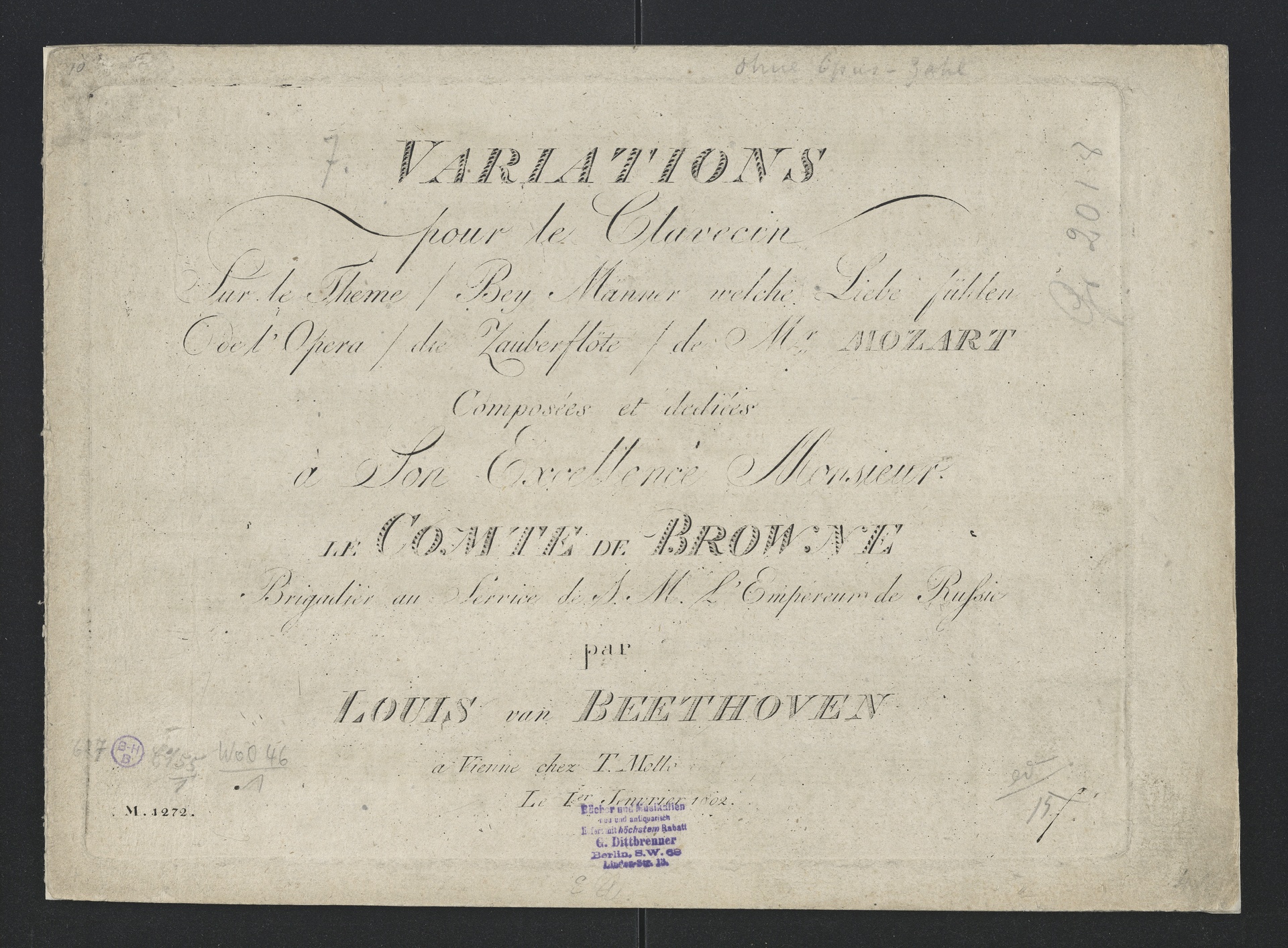 Ludwig van Beethoven, Variationen über "Bei Männern, welche Liebe fühlen" aus Wolfgang Amadeus Mozarts Oper "Die Zauberflöte" für Klavier und Violoncello (Es-Dur) WoO 46, Stimmen, Mollo, 1272