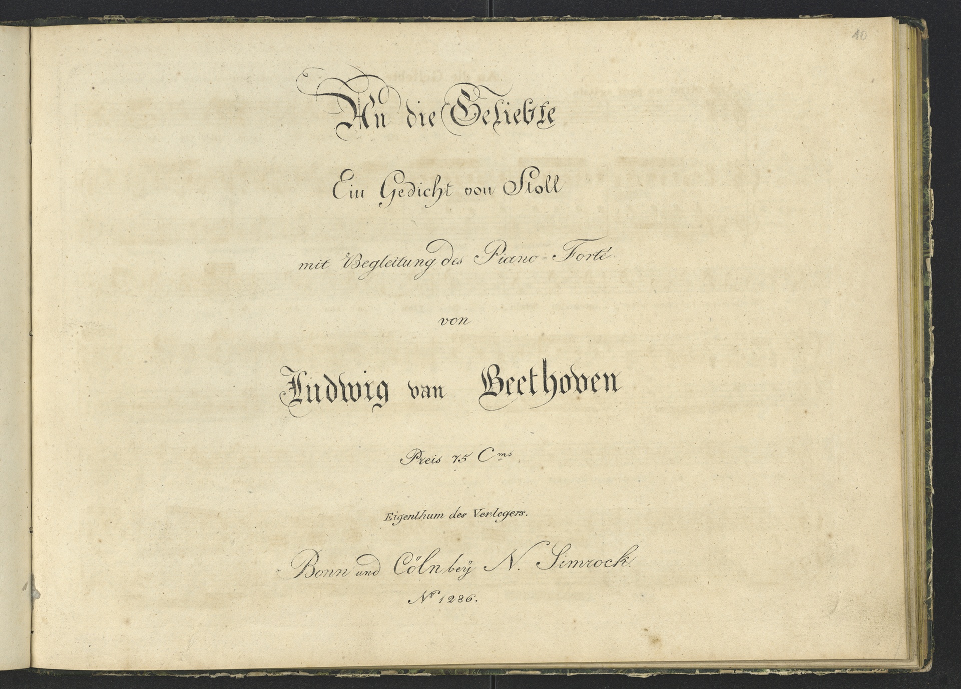 Ludwig van BeethovenJohann Ludwig Stoll, "An die Geliebte", Lied für Singstimme und Klavier, 3. Fassung WoO 140, Simrock, 1286