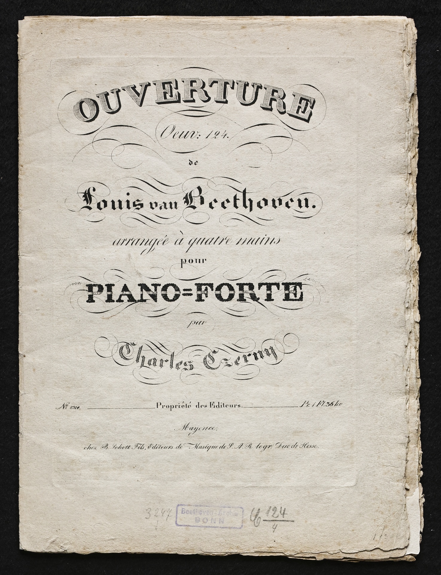 Ludwig van Beethoven, Ouvertüre (C-Dur) zu Carl Meisls Festspiel "Die Weihe des Hauses" op. 124, Bearbeitung für Klavier zu 4 Händen, Schott, 2314
