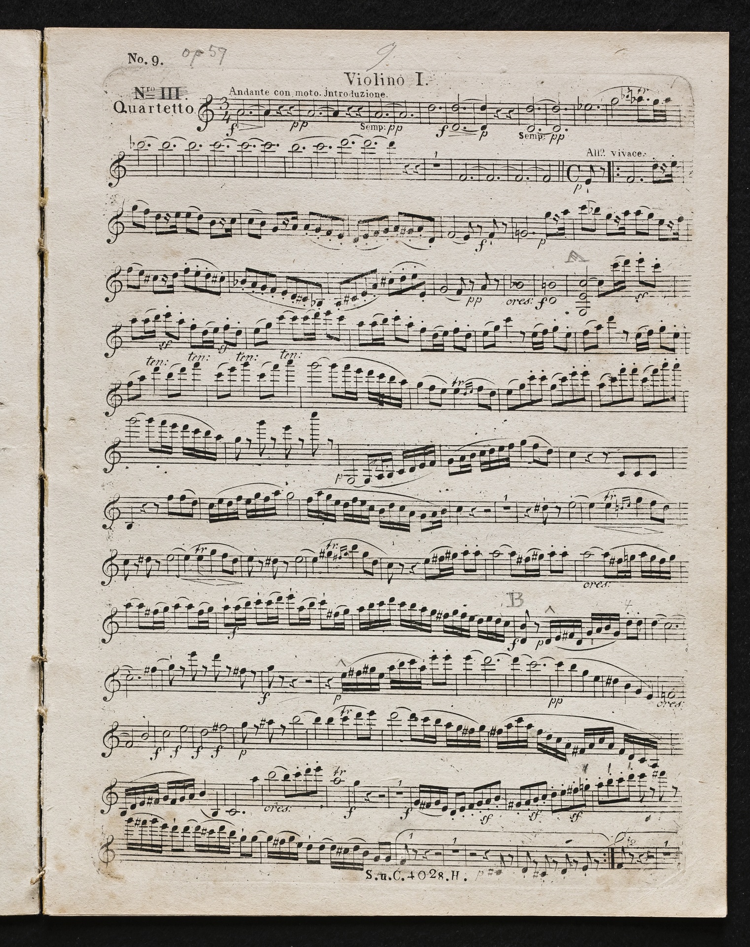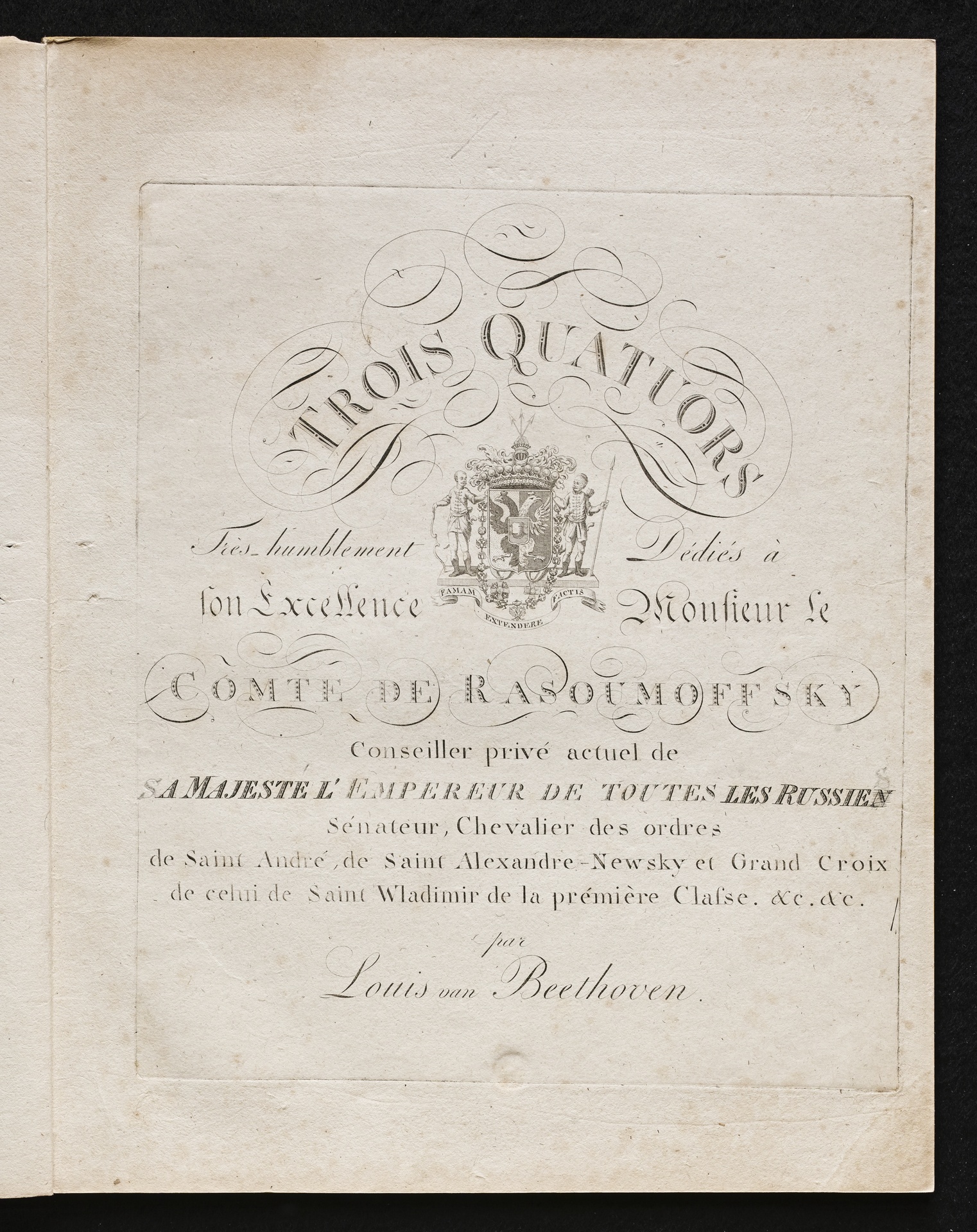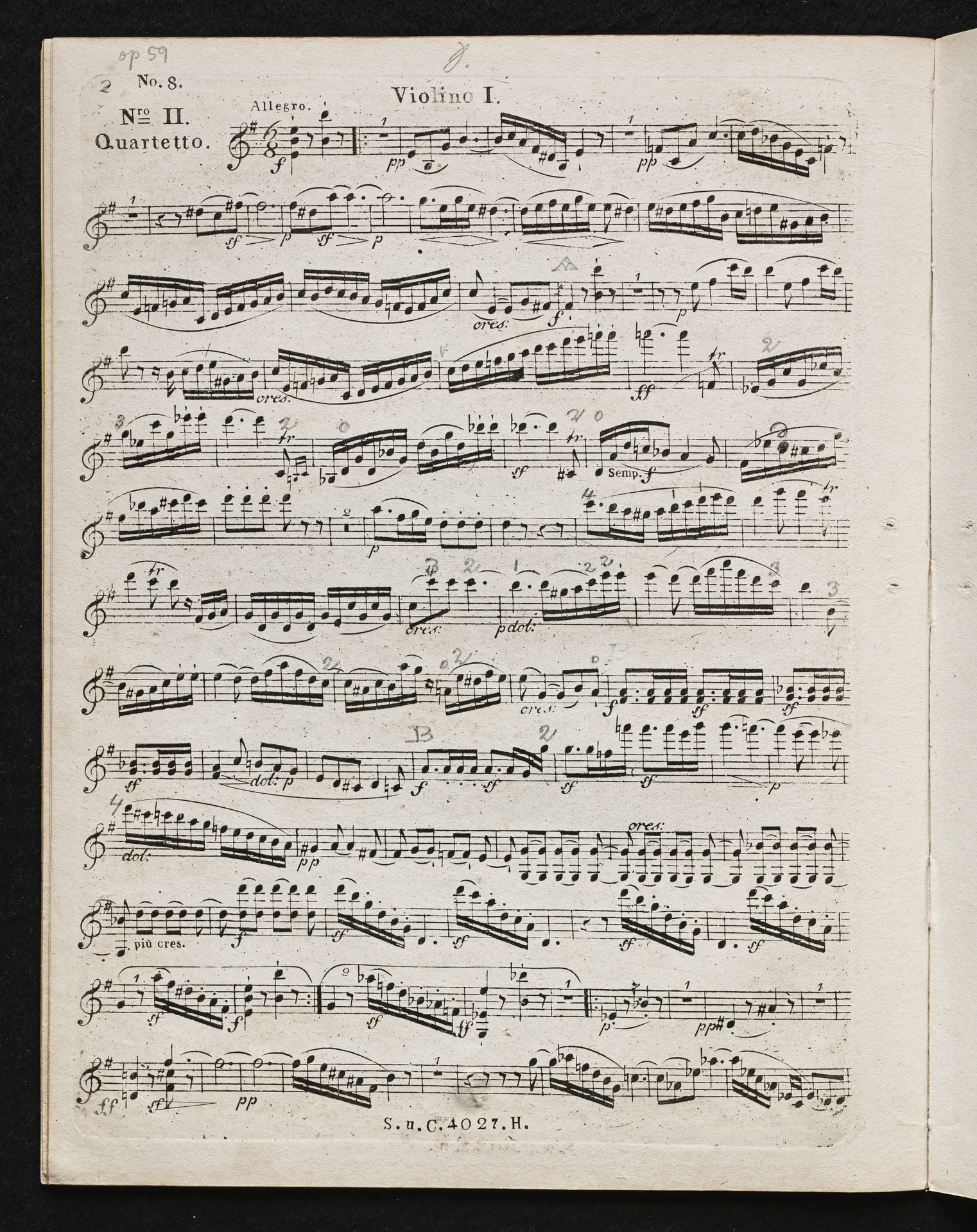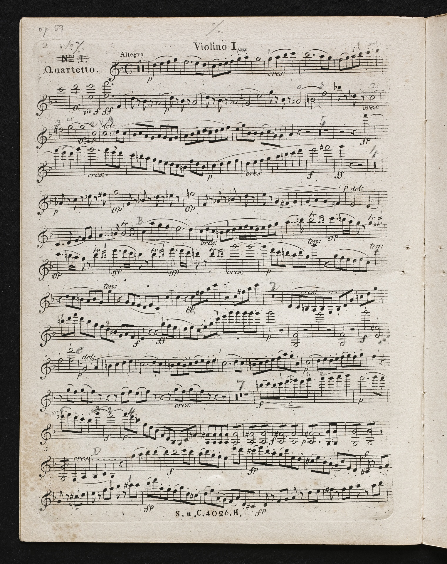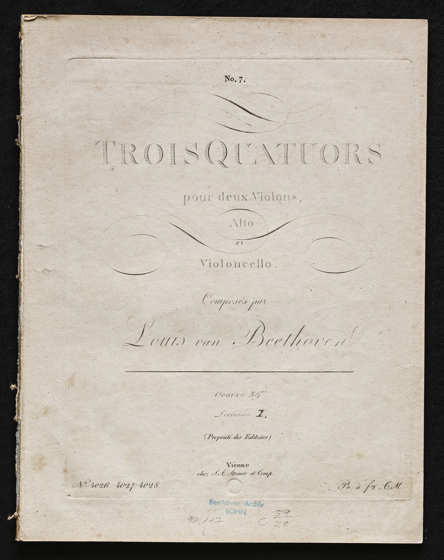 Ludwig van Beethoven, Quartette für 2 Violinen, Viola, Violoncello (F-Dur, e-Moll, C-Dur) op. 59, 1-3, Stimmen, Steiner, 4026-4028