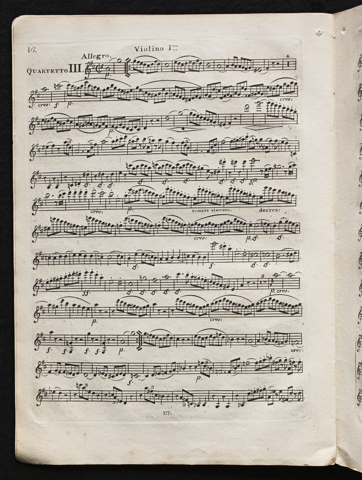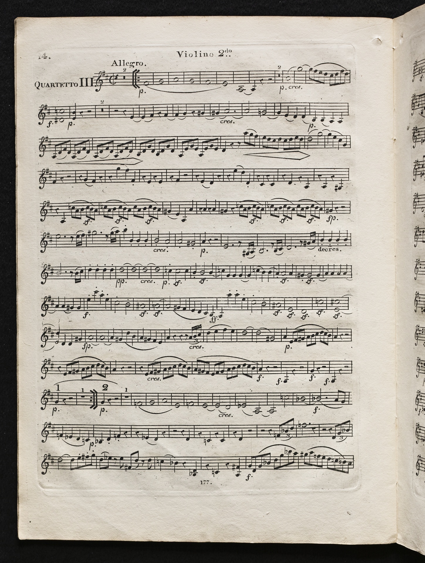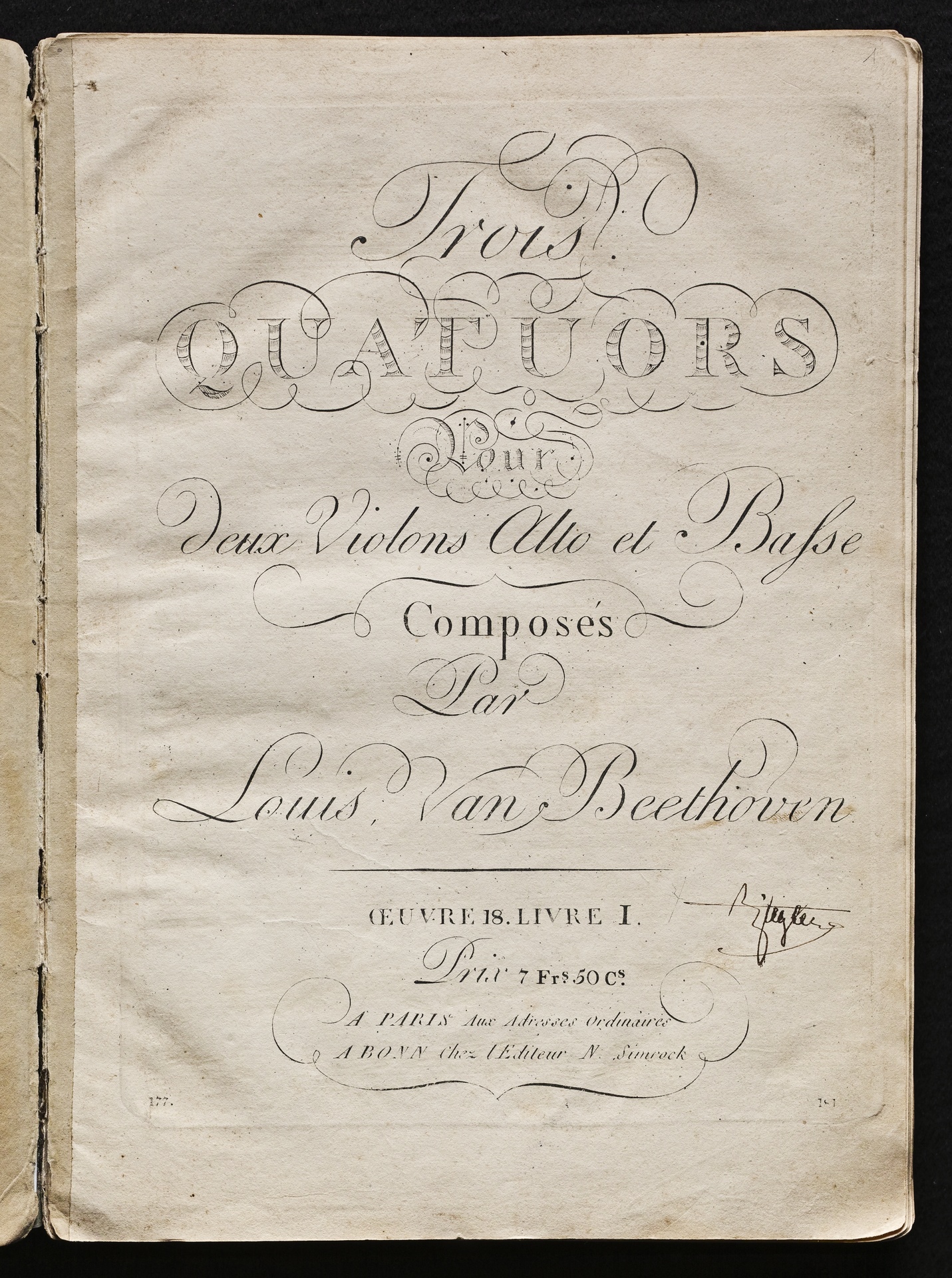 Ludwig van Beethoven, Quartette für 2 Violinen, Viola, Violoncello (F-Dur, G-Dur, D-Dur) op. 18, 1-3, Stimmen, Simrock, 177