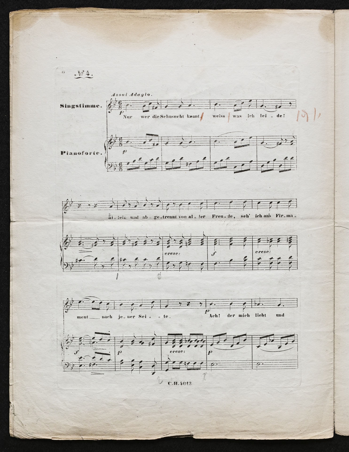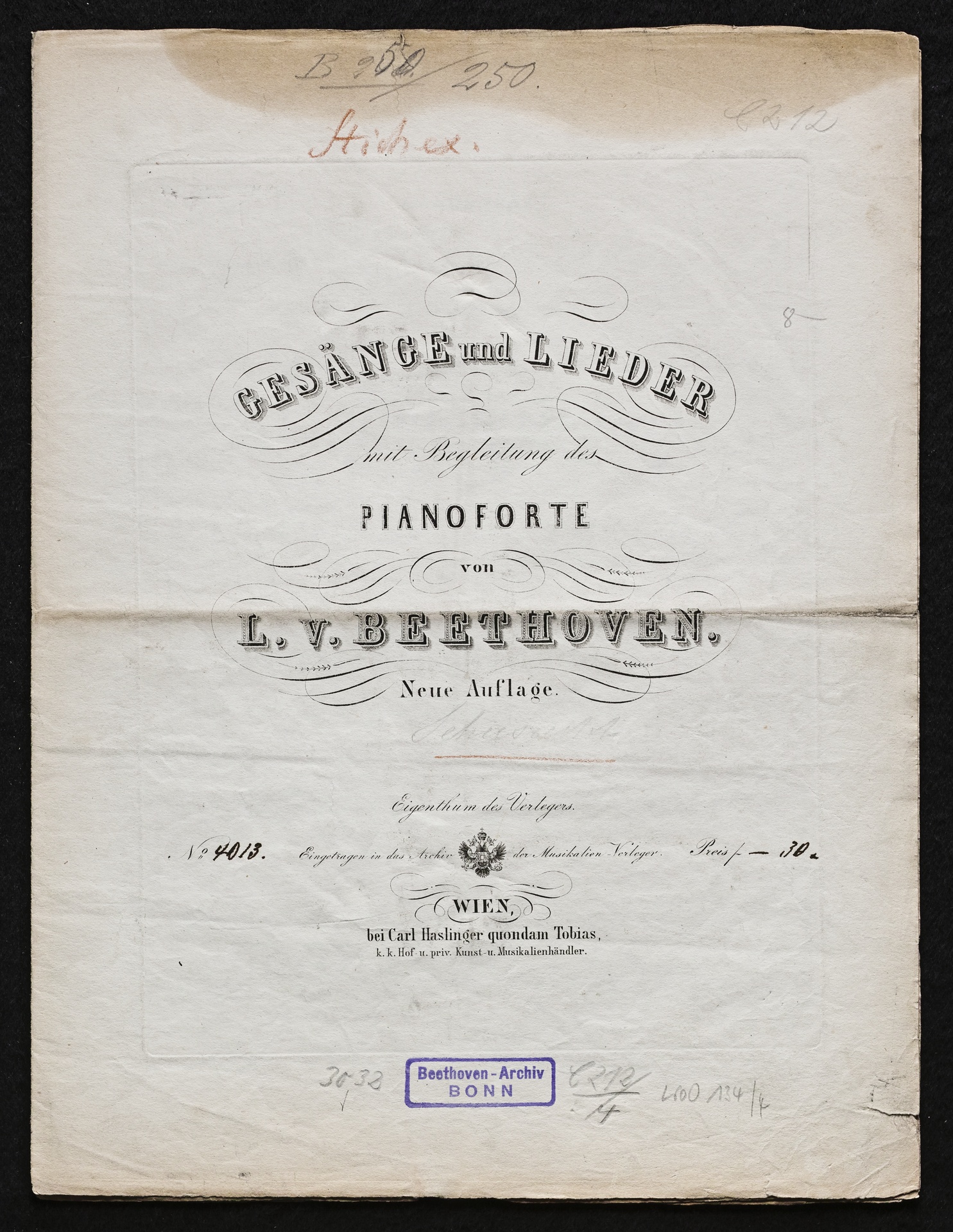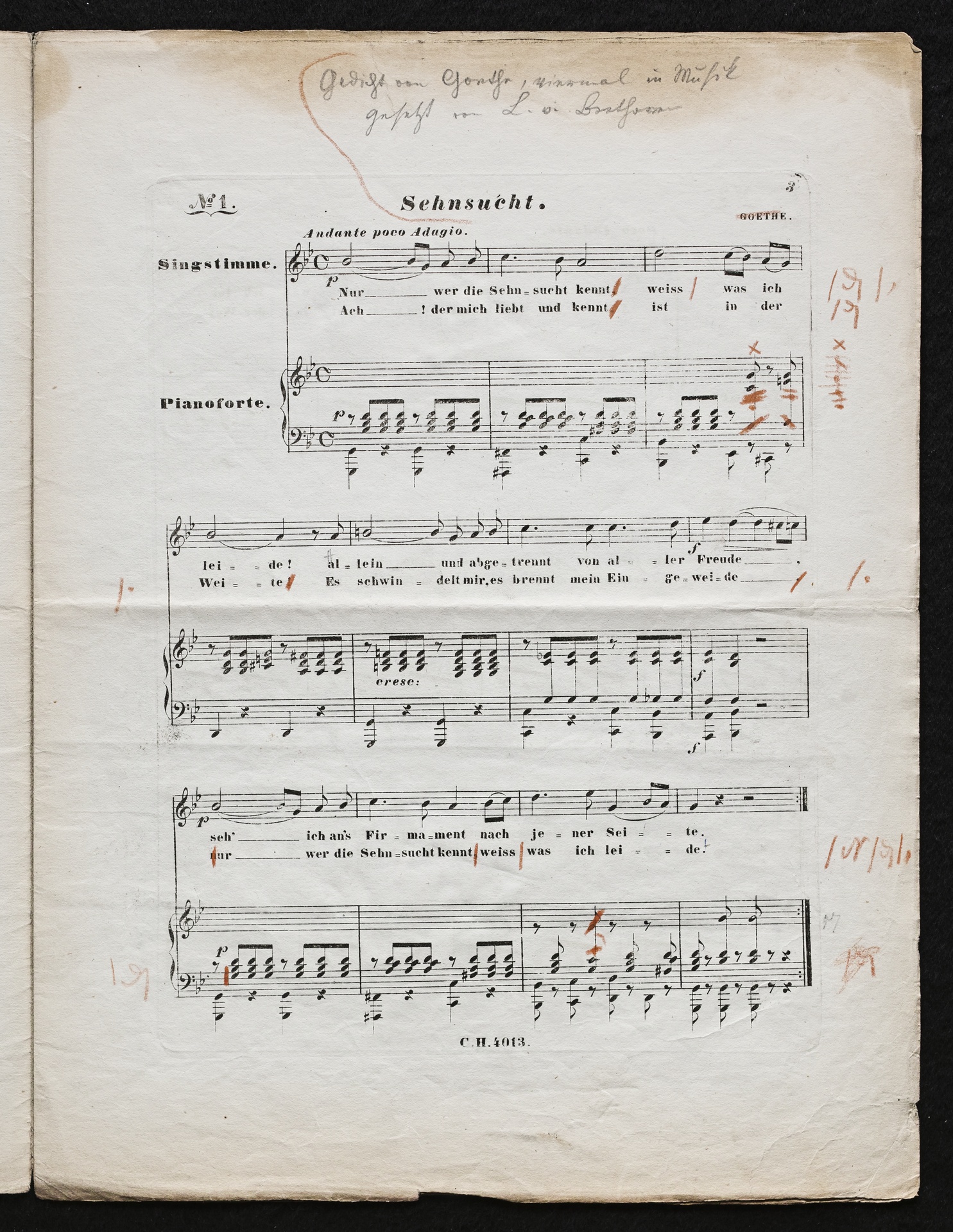 Ludwig van Beethoven, "Sehnsucht", Lied für Singstimme und Klavier in 4 Kompositionen WoO 134, Haslinger, 4013