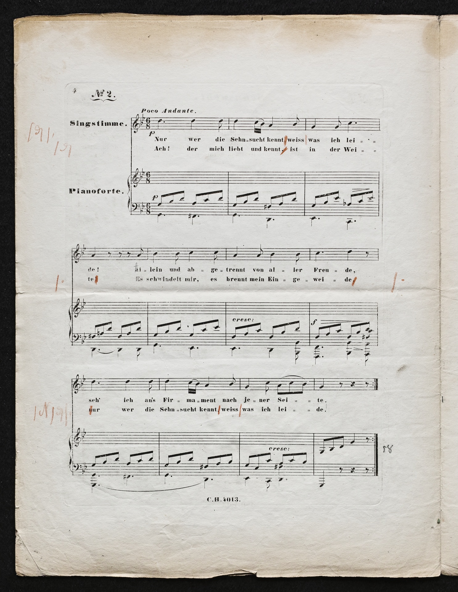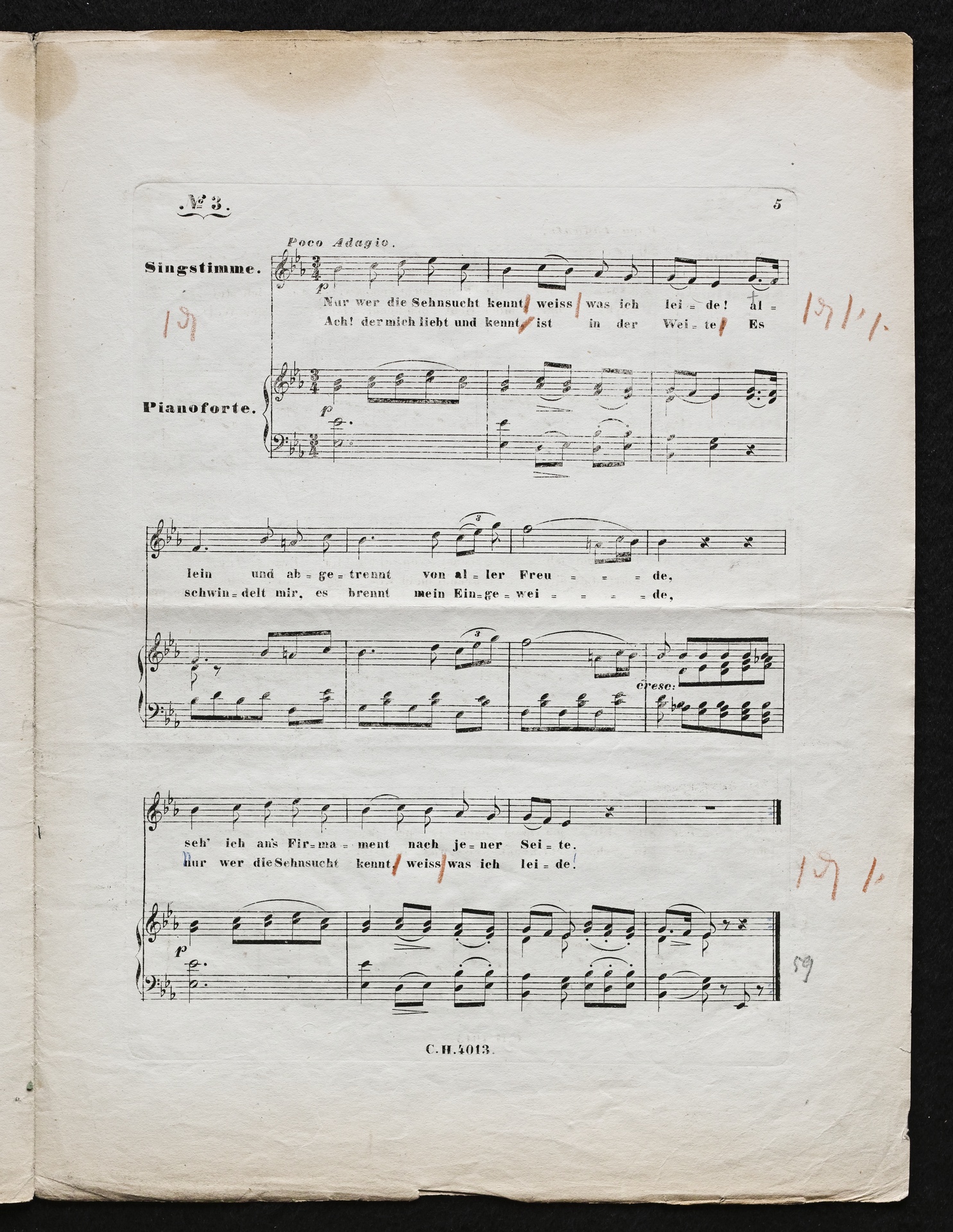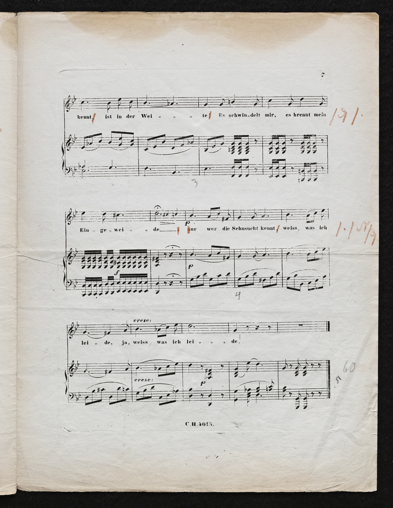 Ludwig van Beethoven, "Sehnsucht", Lied für Singstimme und Klavier in 4 Kompositionen WoO 134, Haslinger, 4013