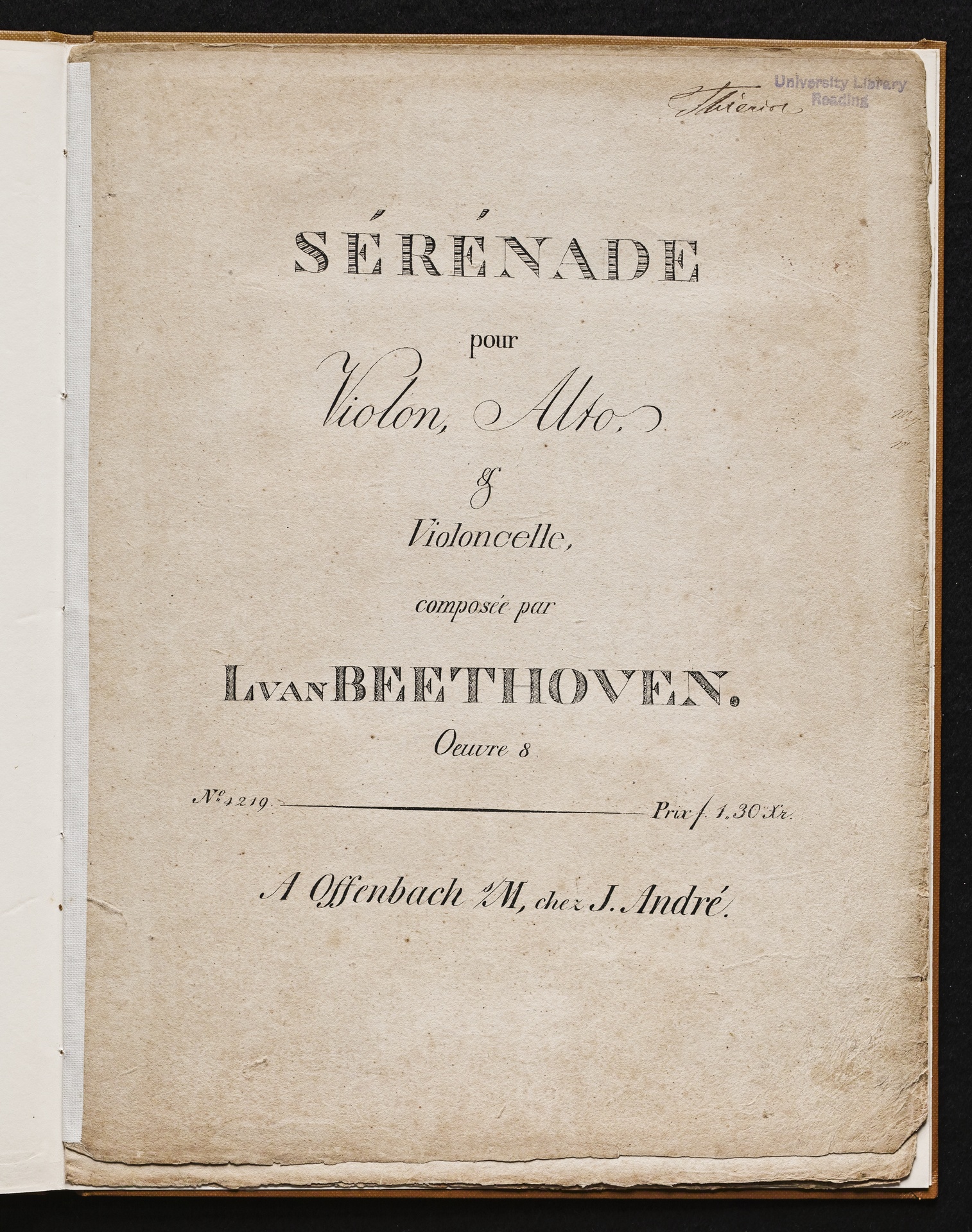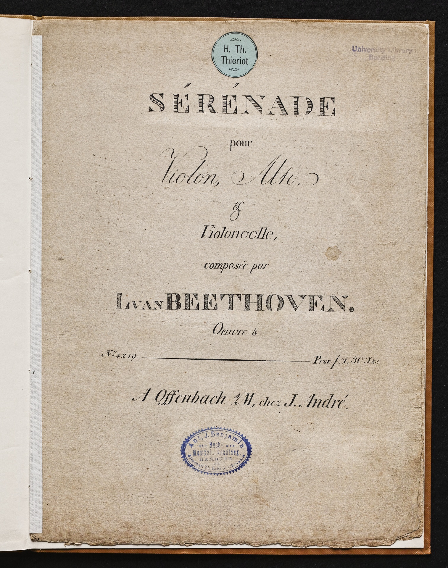 Ludwig van Beethoven, Serenade für Violine, Viola und Violoncello (D-Dur) op. 8, Stimmen, André, 4219