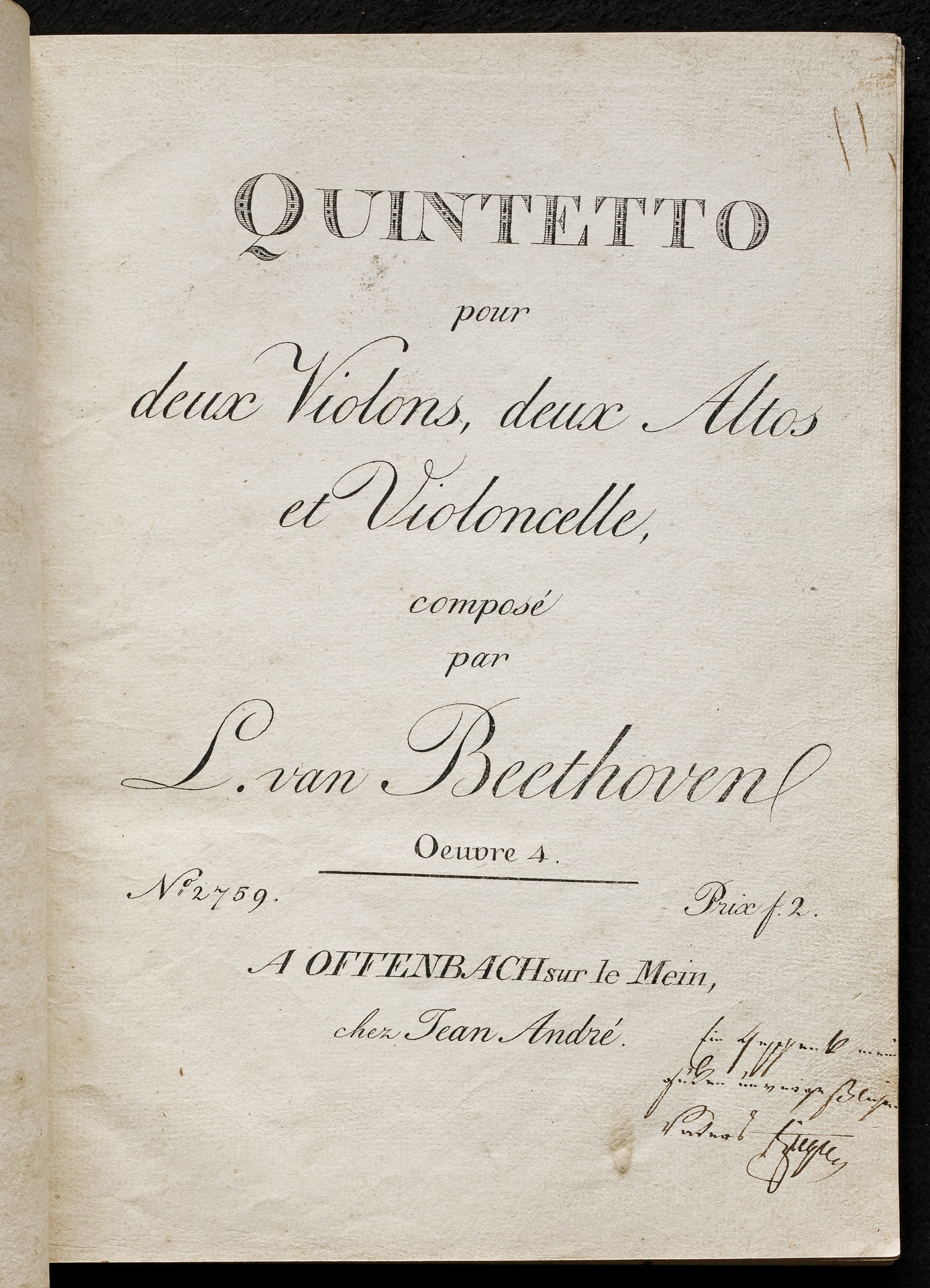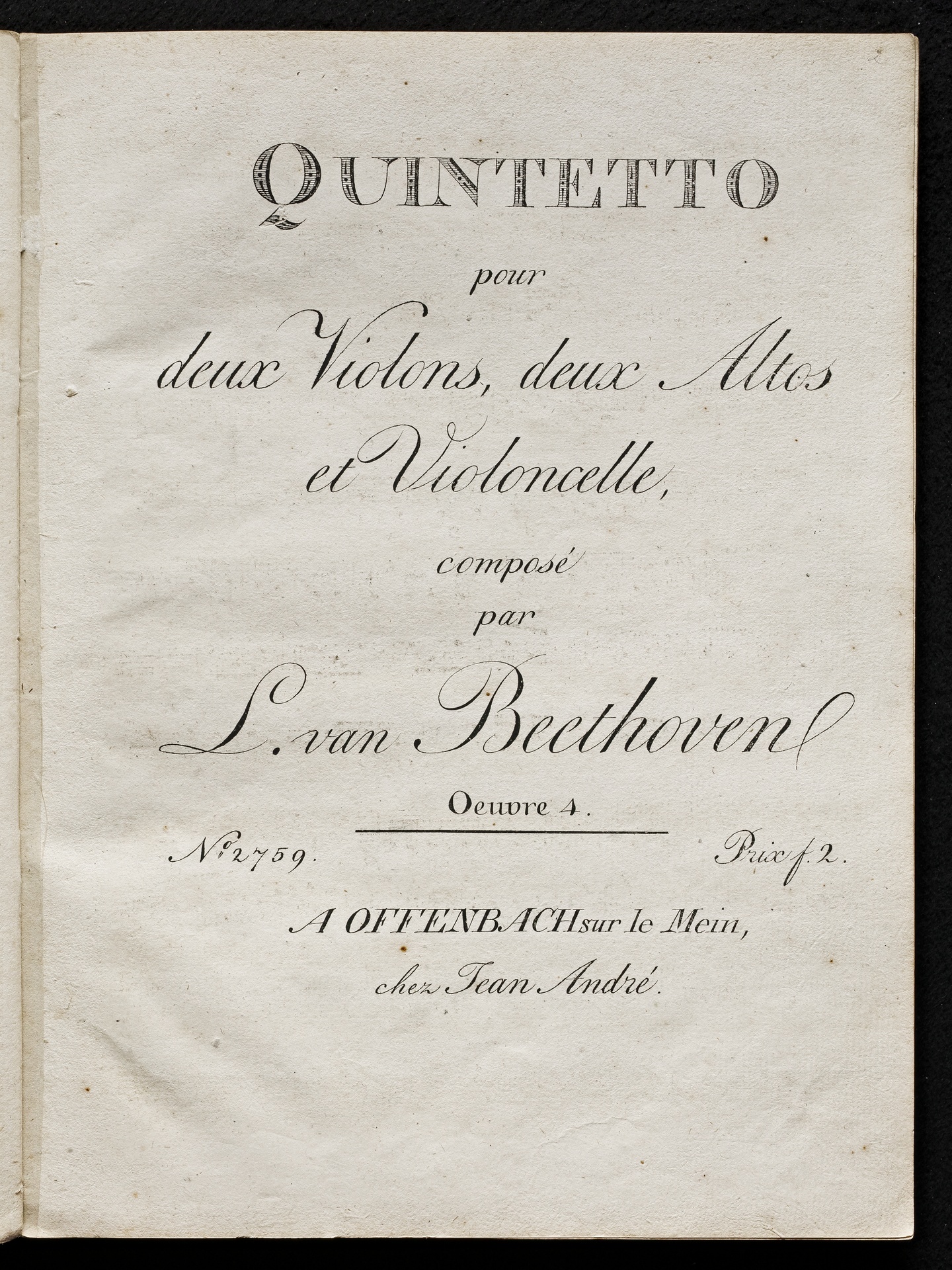 Ludwig van Beethoven, Quintett für 2 Violinen, 2 Violen, Violoncello (Es-Dur) op. 4, Stimmen, André, 2759