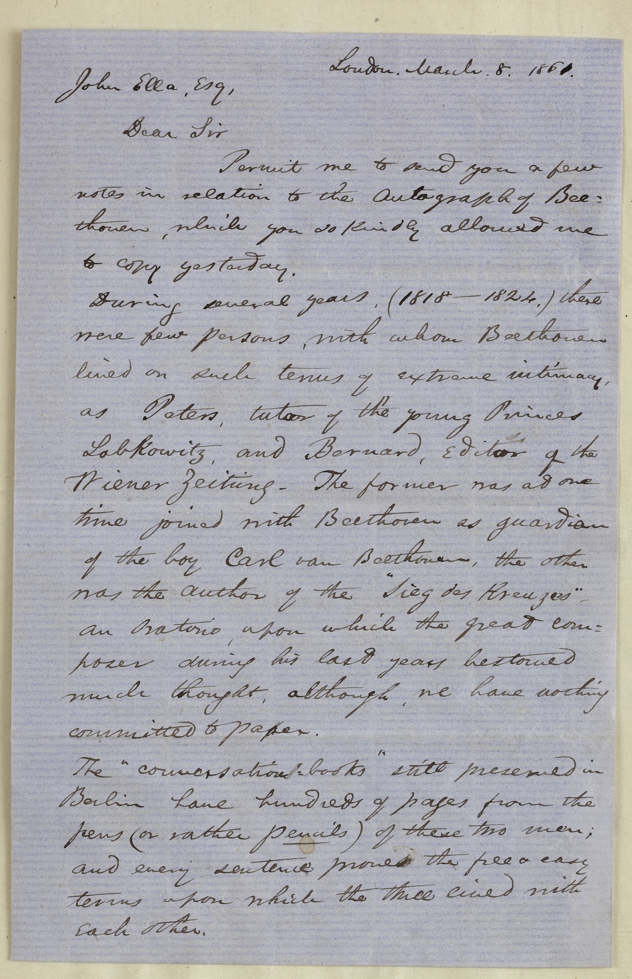 Ludwig van Beethoven, Brief an Karl Peters, Wien, vor dem 9. März 1820, Autograph