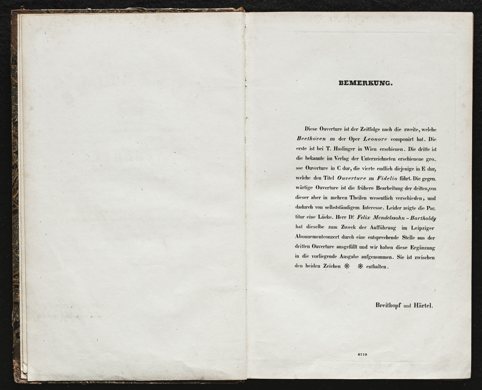 Ludwig van Beethoven, Fidelio op. 72, 1. Fassung 1805, Leonoren-Ouvertüre Nr. 2 (C-Dur), Partitur, Breitkopf und Härtel, 6719