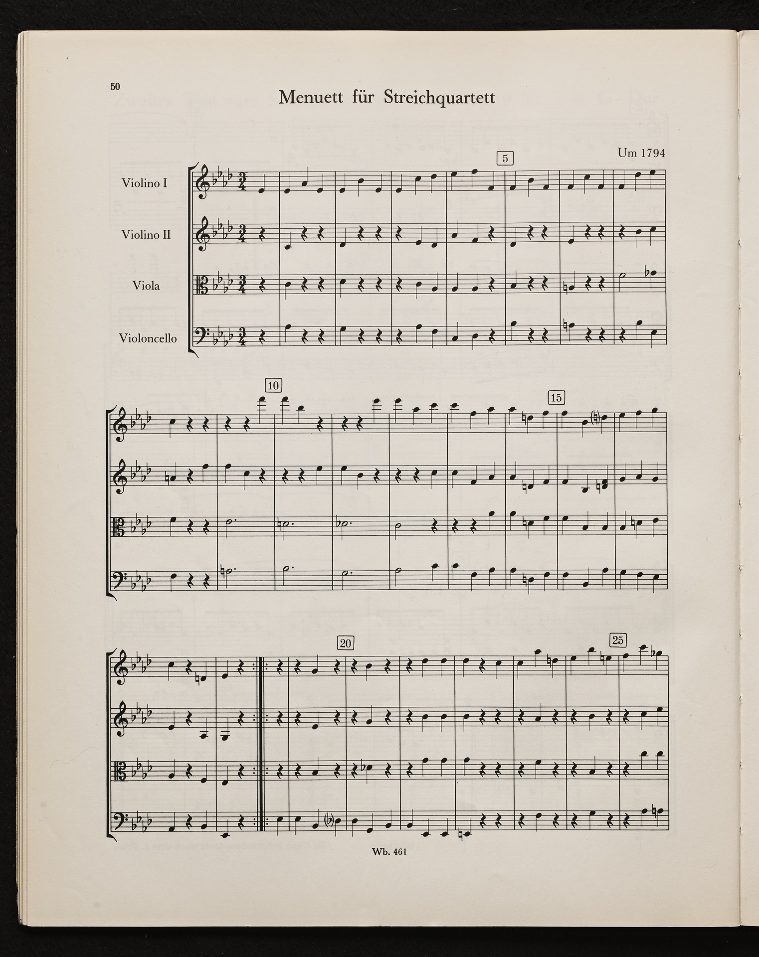 Ludwig van Beethoven, Menuett für zwei Violinen, Viola und Violoncello (As-Dur) WoO 209, Partitur, Breitkopf und Härtel, 461